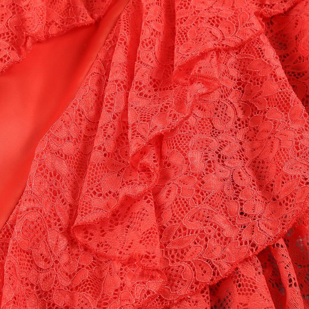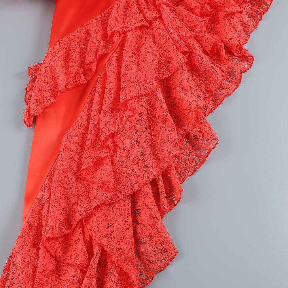 RED LACE SATIN CORSET DRESS
