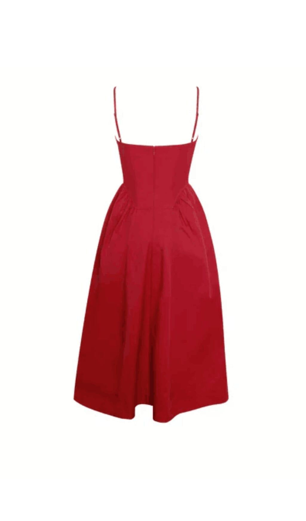 Be the life of the party sporting this sizzling red midi dress. Crafted with delicate lace trim detailing and an alluring silhouette, this stunner is sure to turn heads wherever you go. So, go ahead and be the one that makes the night pop!