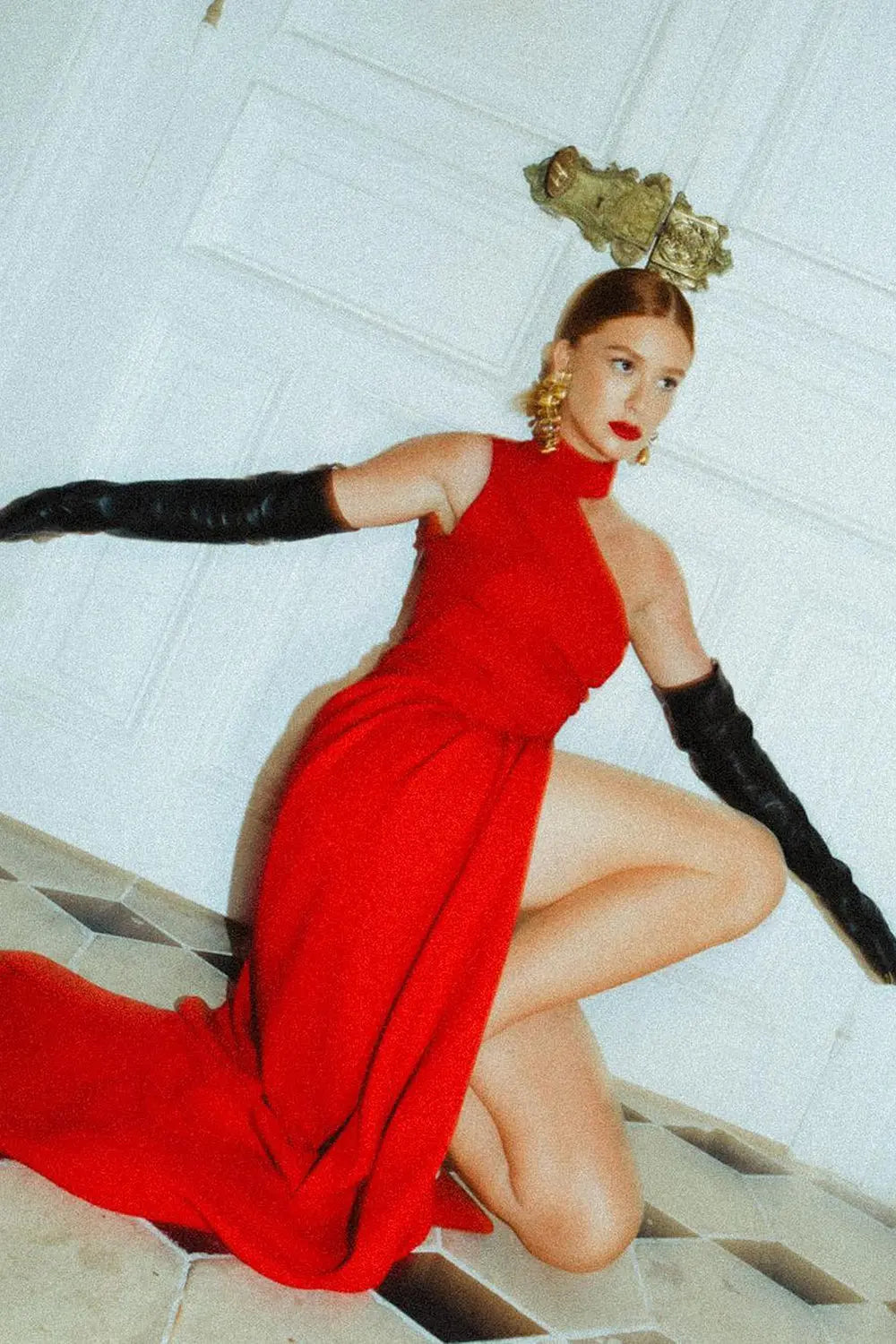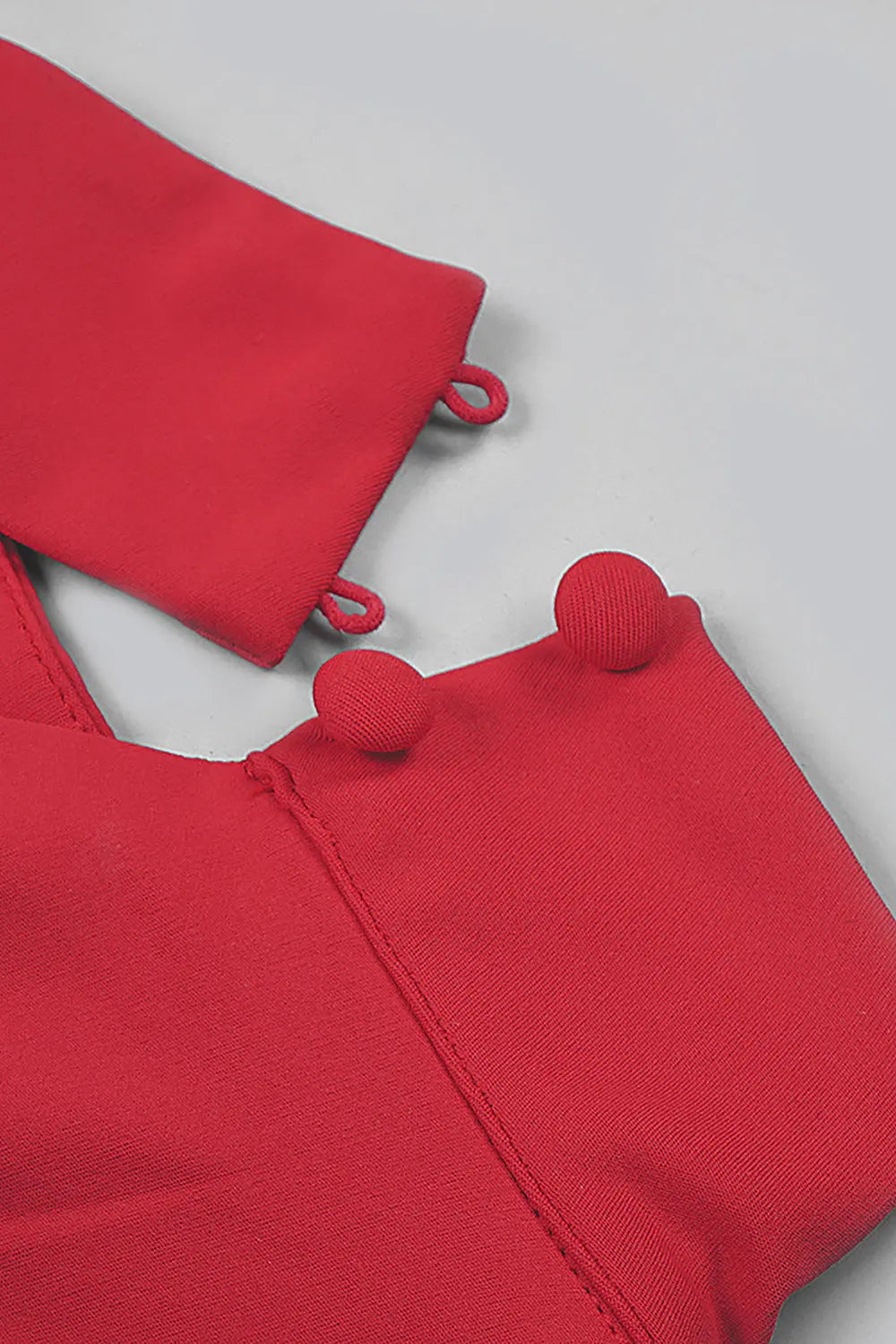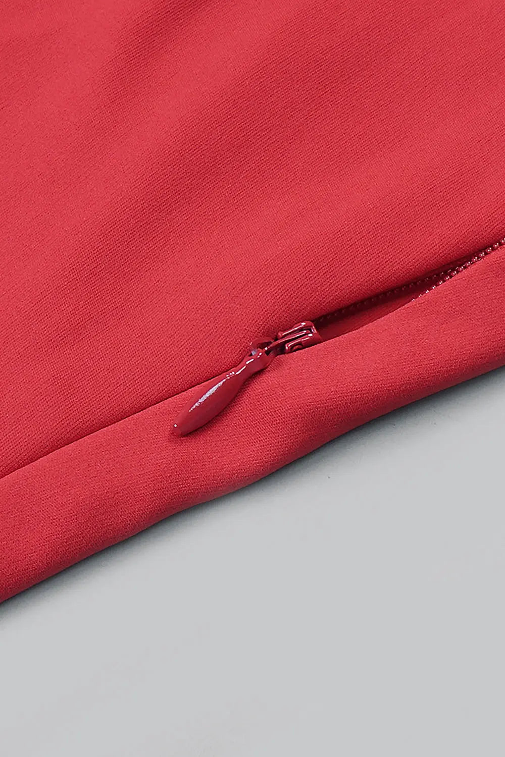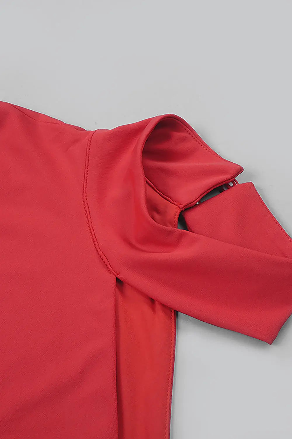 Red O Neck One Shoulder Sleeveless High Split Maxi Dress