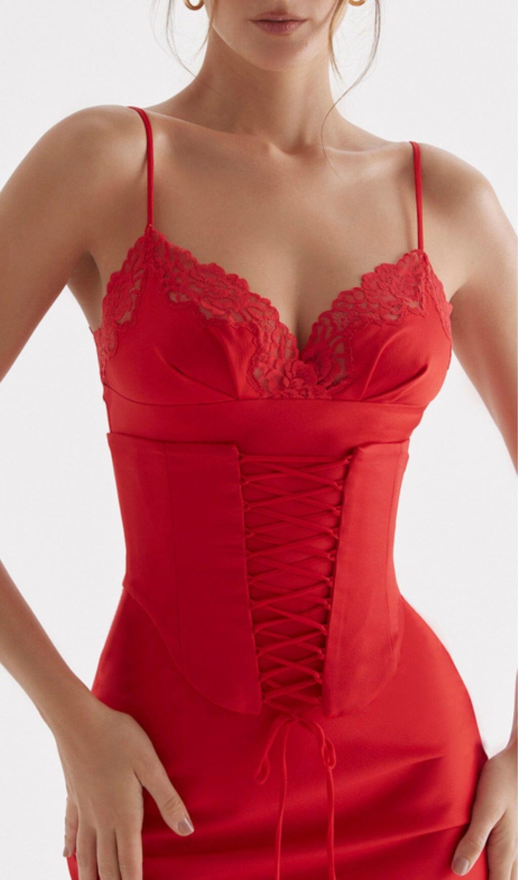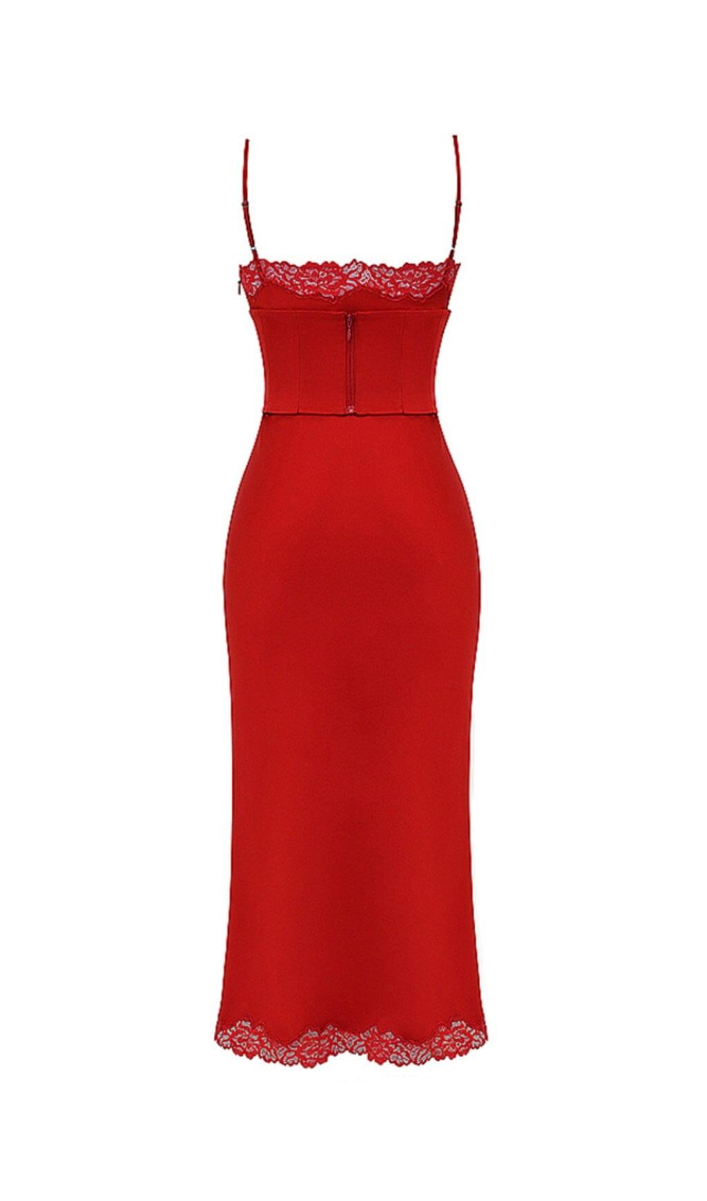 RED ROSE SATIN SLIP DRESS