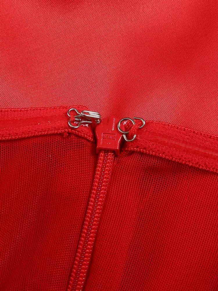 Stand out in this luxurious dress, featuring a stunning red satin fabric and delicate lace details. With a flattering corset design, this dress will accentuate your curves and make a statement at any event.