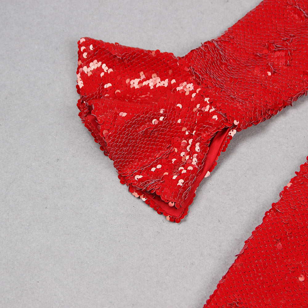 AZA RED SEQUIN BACKLESS MAXI DRESS