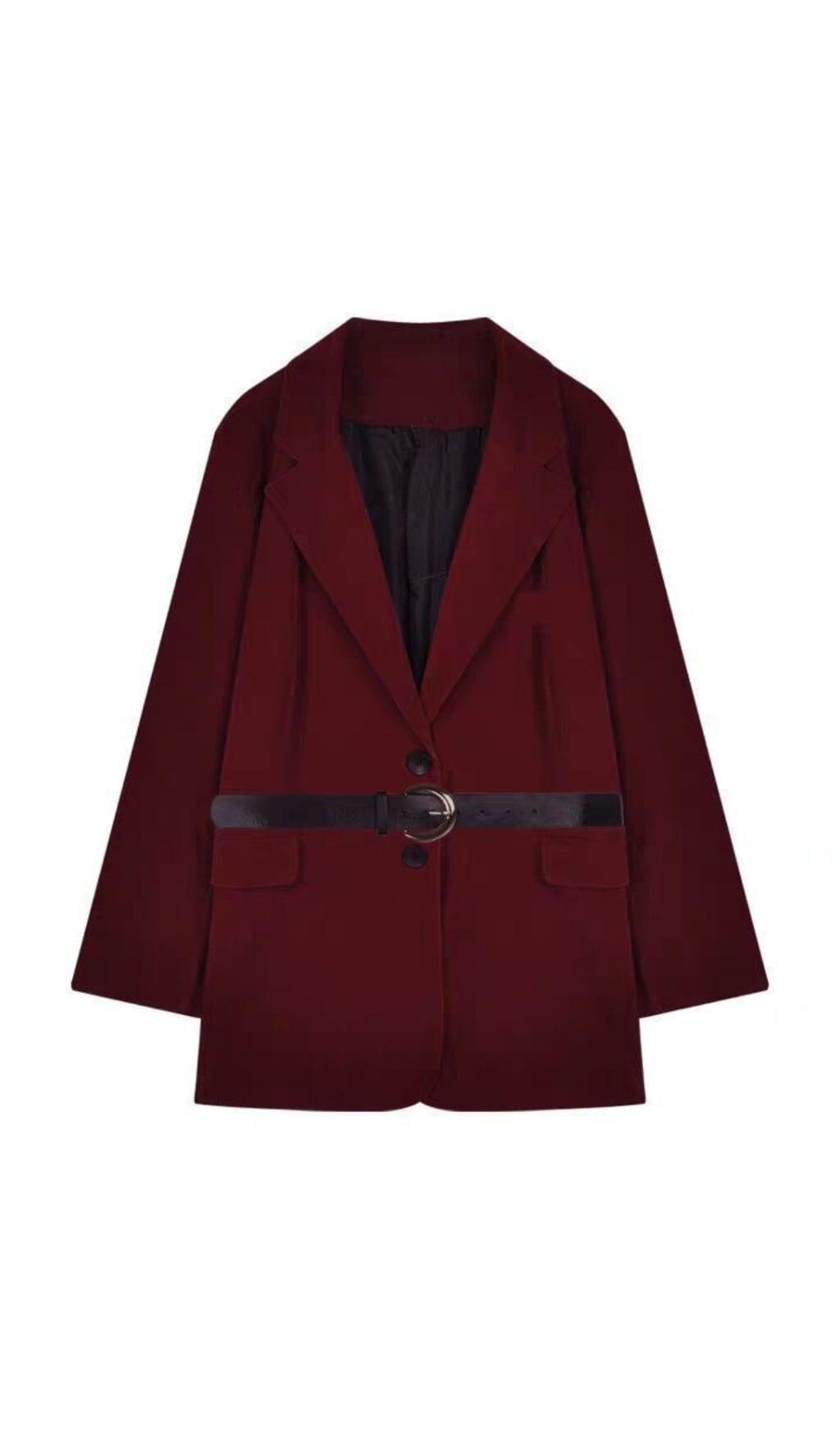 Unleash your inner fashionista with our RED VELVET BLAZER! This luxurious piece comes with a stylish BELT, perfect for cinching your waist. Be the envy of everyone with its vibrant color and soft texture. (Fashion game on point!)