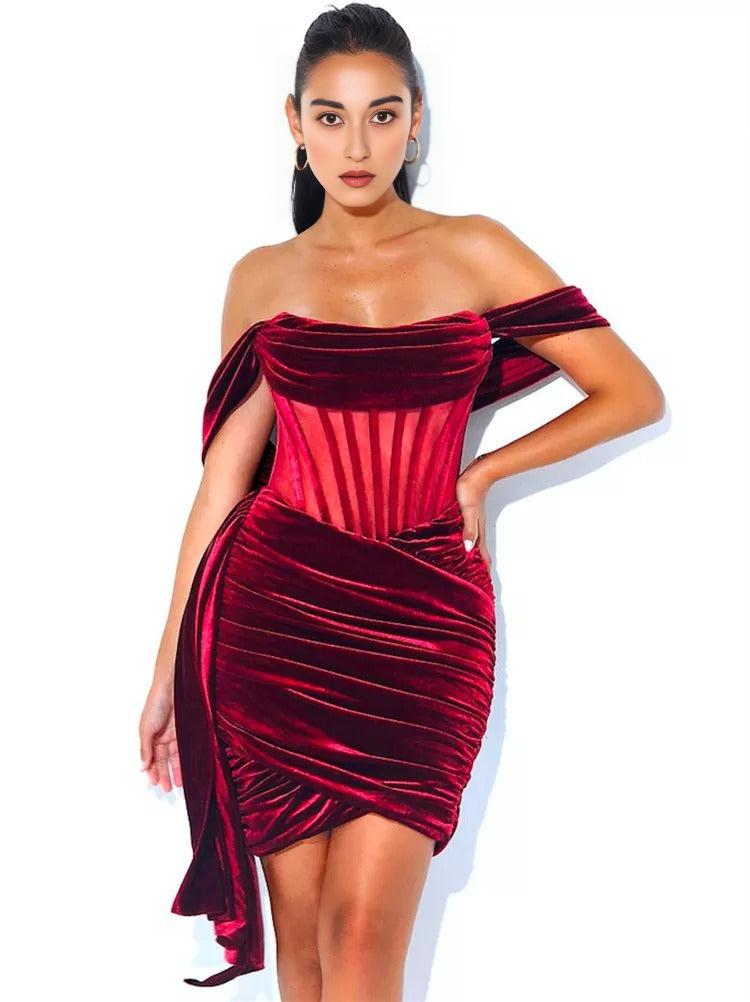 The Wine Red Velvet Corset Mini Dress runs true to our size chart and is cut to suit our size recommendations. Please refer to our size chart for the best fit.