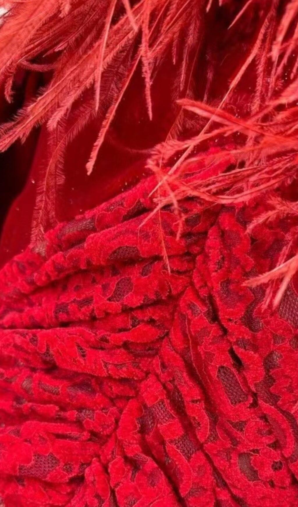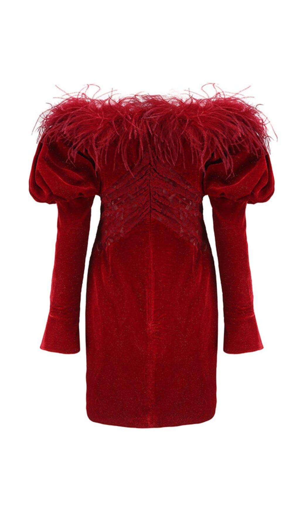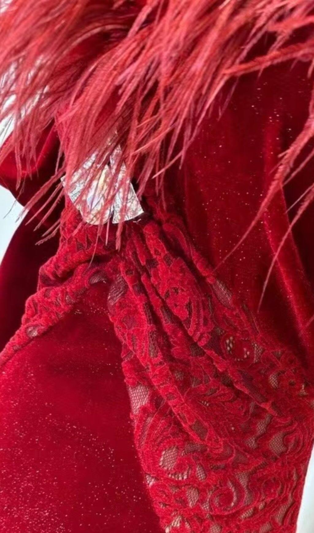 What sets our Red Velvet Off Shoulder Mini Dress apart from competitors is its attention to detail and high-quality craftsmanship. The transparent lace details and puff sleeves add a touch of elegance and sophistication, making this dress truly stand out. The off shoulder design enhances your feminine charm, while the mini length adds a flirty and playful vibe. Made from premium velvet fabric, this dress offers a luxurious feel and ensures maximum comfort.