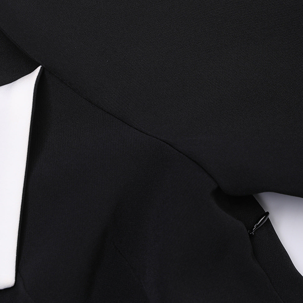 • Special Features: Asymmetric neckline with a color-blocked collar, The skirt overlay is detachable, The colored flap can be detached