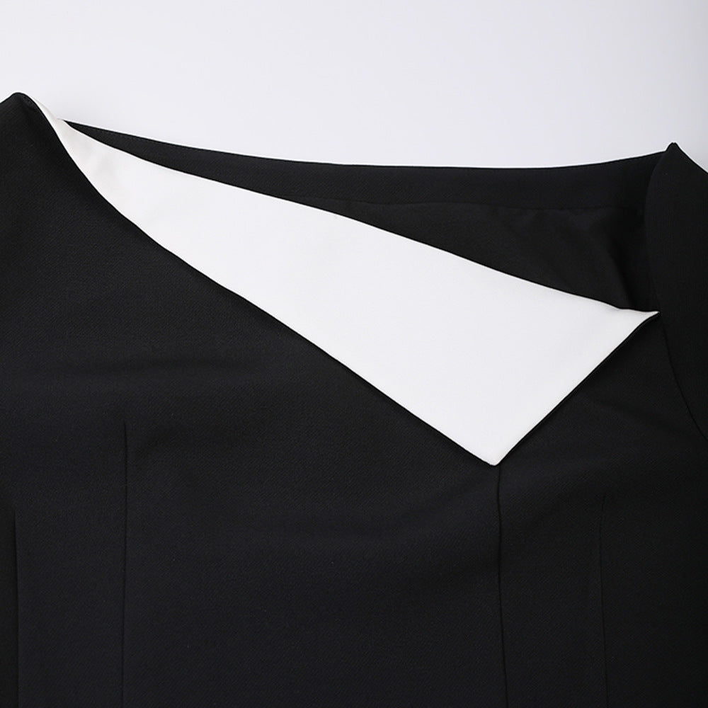 This dress features an eye-catching asymmetrical neckline and is made from a luxurious polycotton blend for maximum comfort. Perfect for any occasion, this dress is a must-have for any fashion-forward individual.