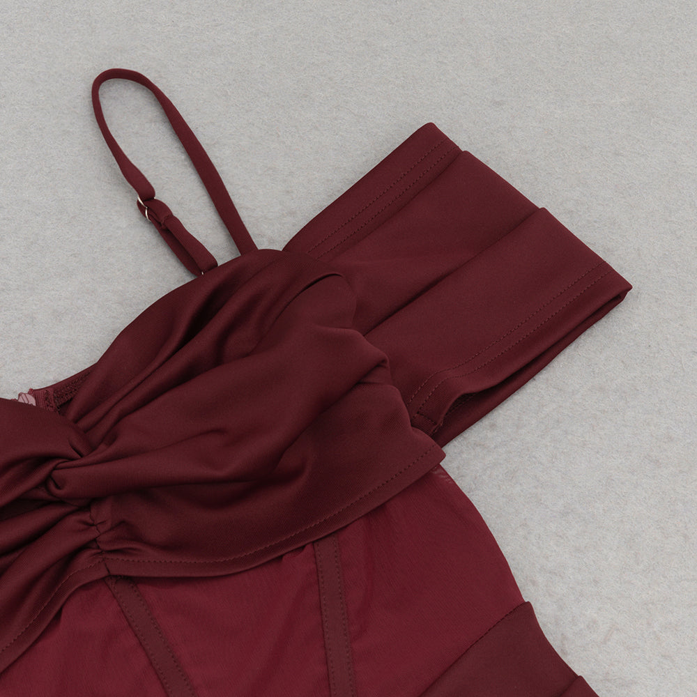 REGINA BURGUNDY HIGH SLIT RUCHED MAXI DRESS