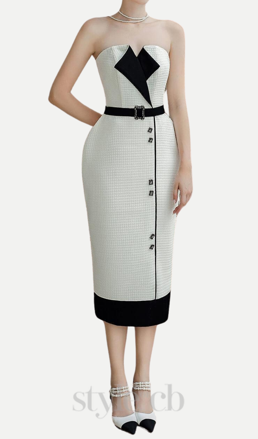 Experience the perfect blend of style and comfort with the dress. Crafted from luxurious tweed fabric with a semi-heart neckline, this elegant midi dress is perfect for any special occasion. Enjoy the feel of luxury with every wear!