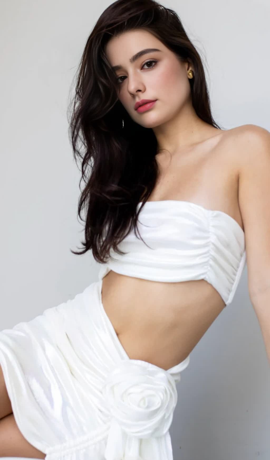 This white strapless mini dress features a regular fit with elegant pleating that adds texture and movement. The subtle cutout detail enhances its modern silhouette, making it a sophisticated choice for evening events or stylish daytime occasions. Crafted to combine comfort with contemporary design, it offers a flattering shape that highlights the shoulders and neckline.