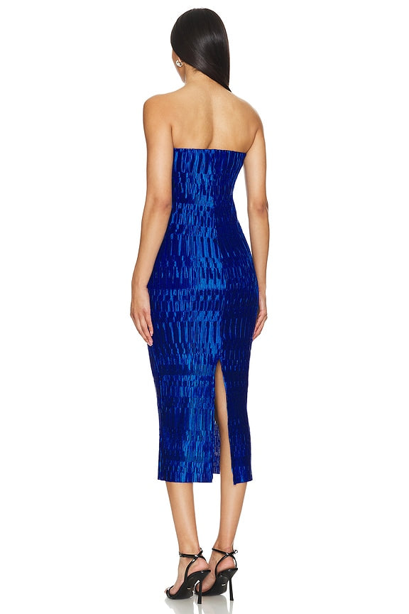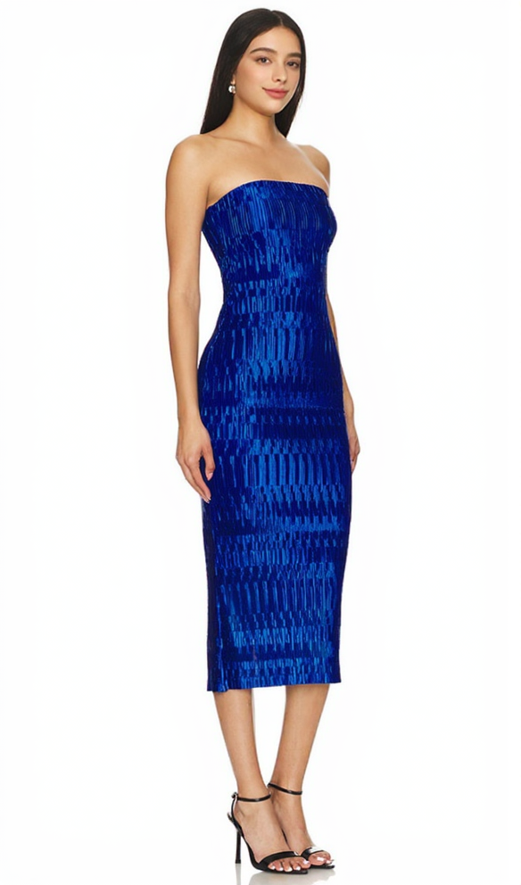 Reine Plisse Strapless Midi Dress