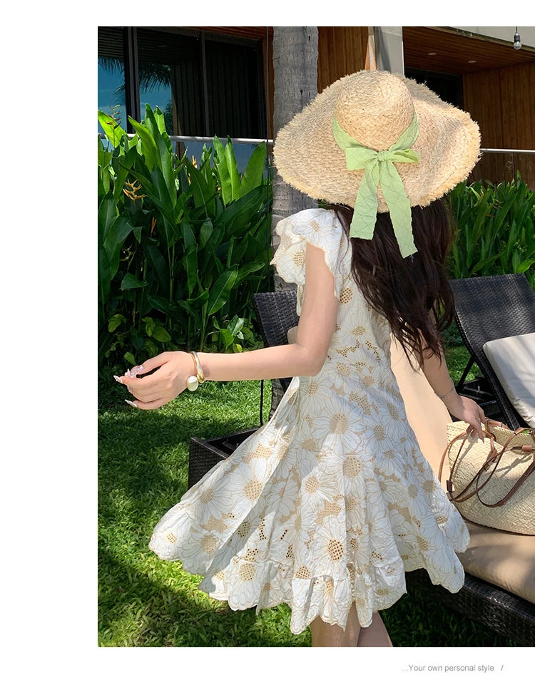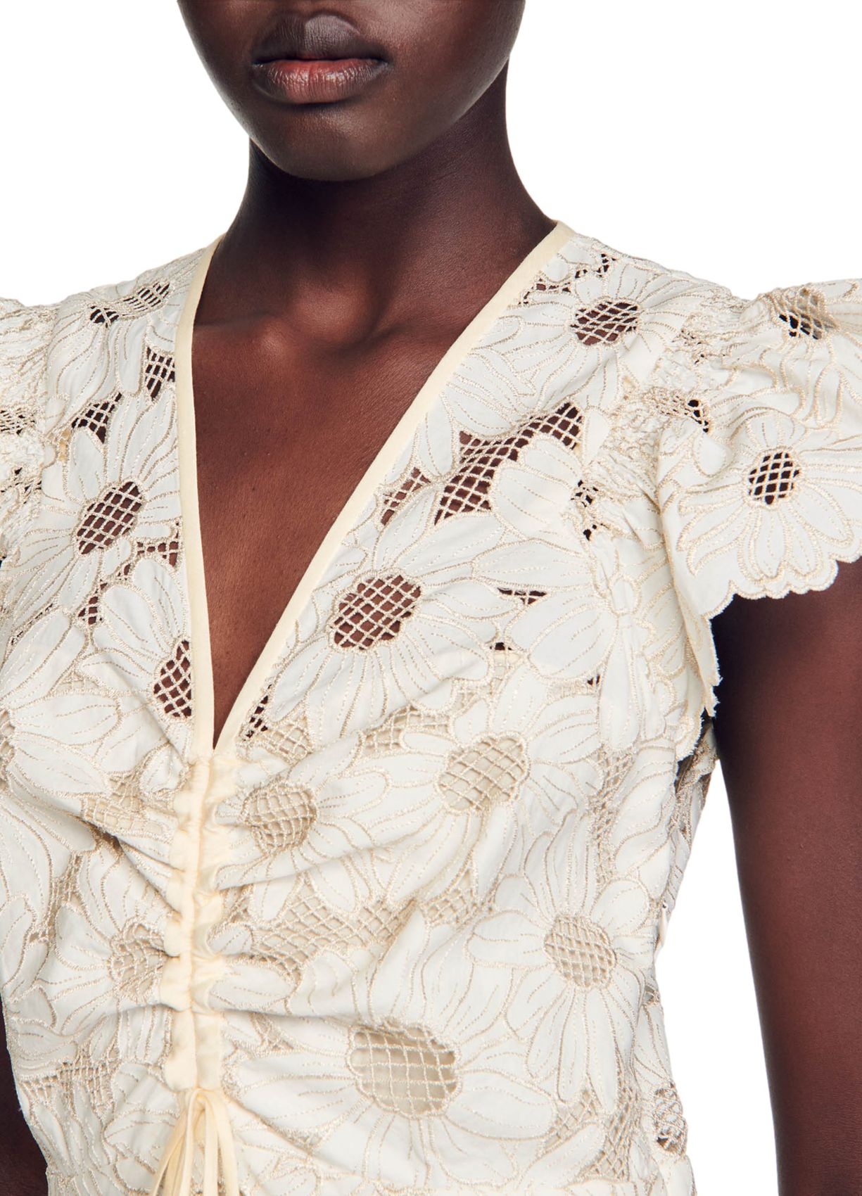 RENATA DAISY GUIPURE V NECK MINI DRESS