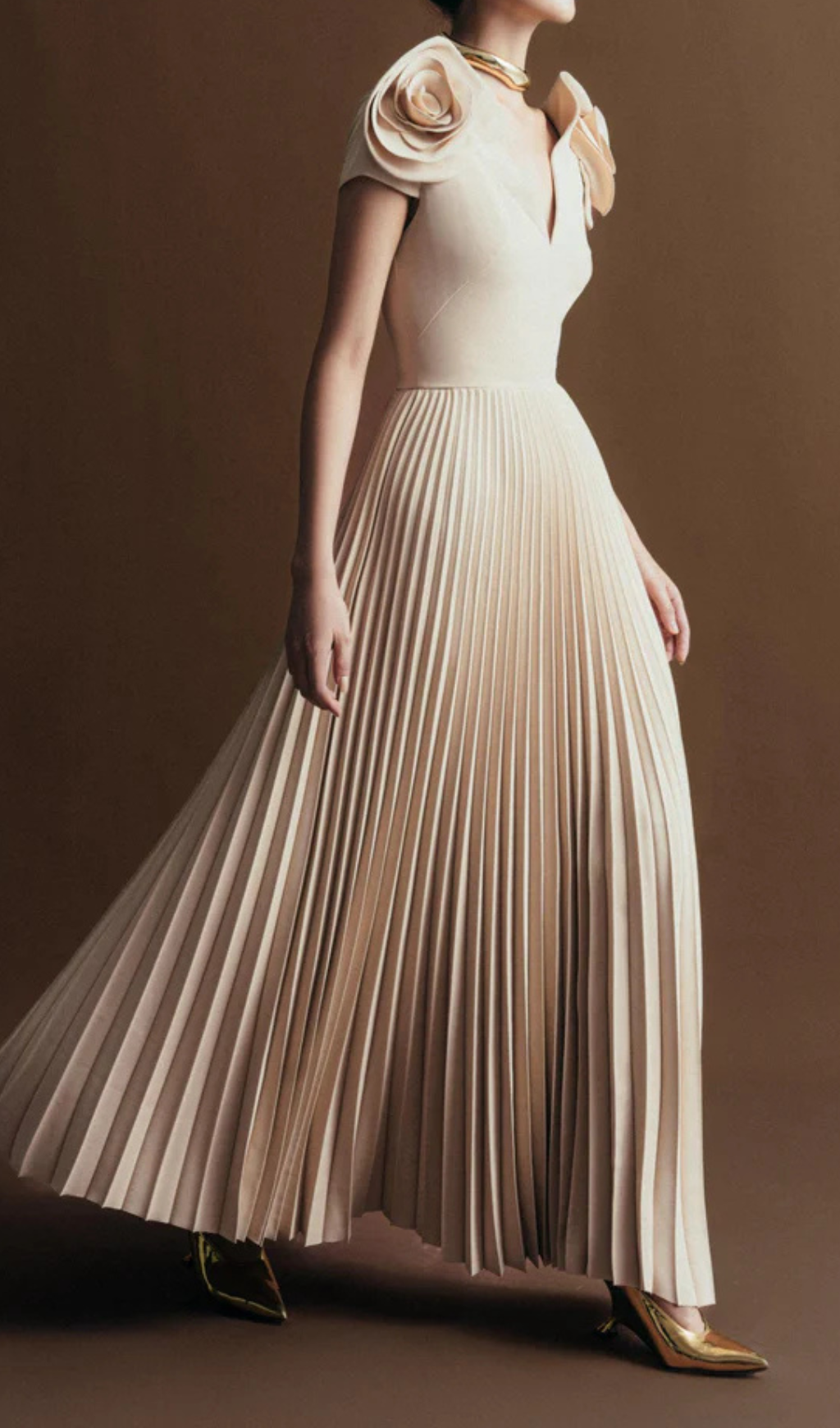 • Rose appliqué details on shoulders