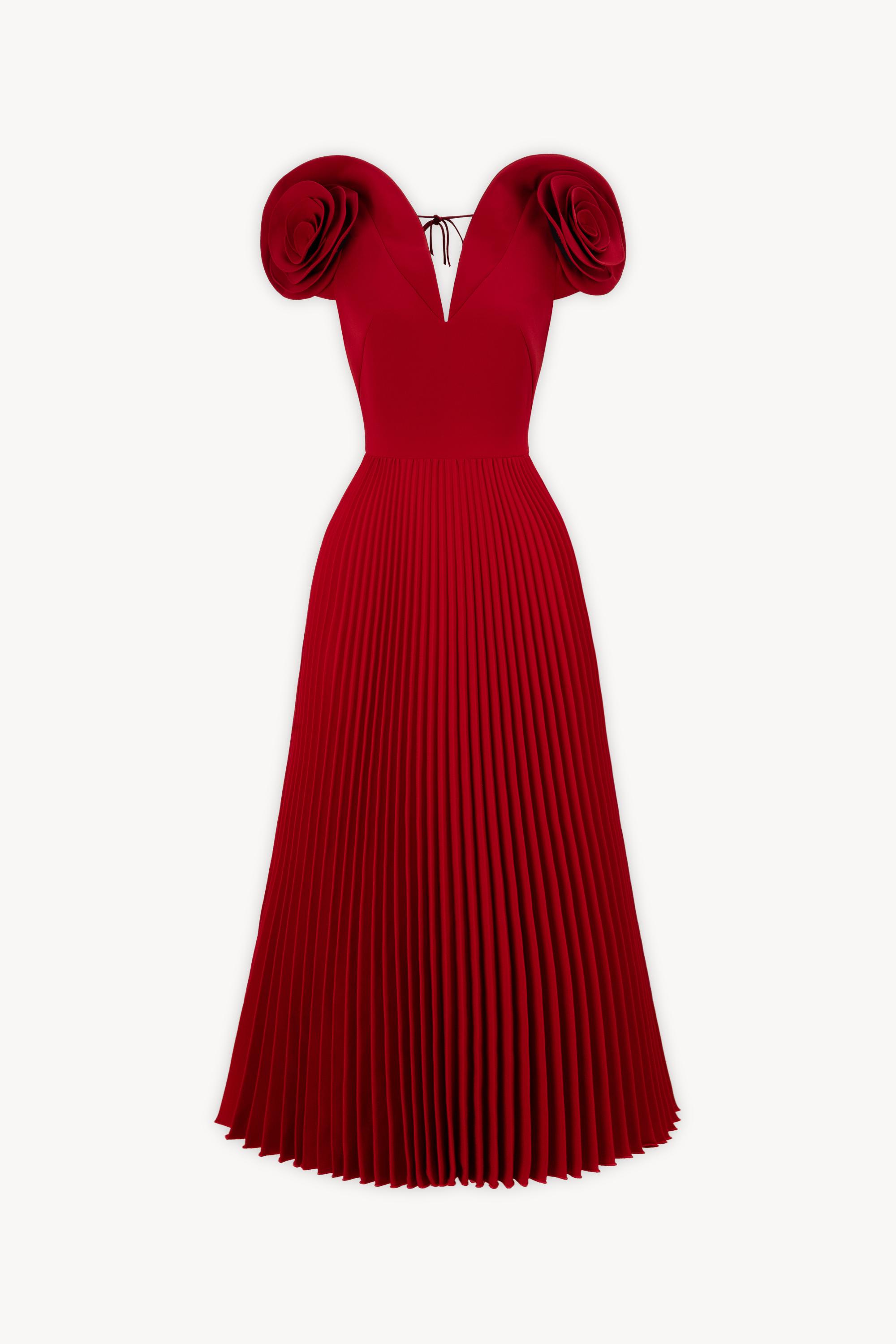rhapsody floral embellished pleated midi dress