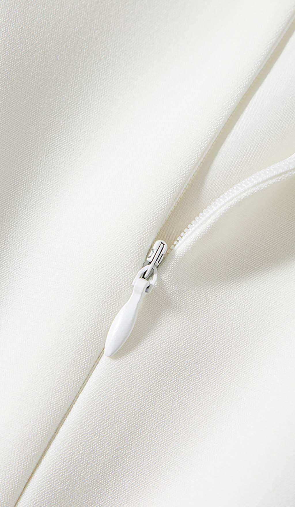 RHINESTONE BOW TIE MINI DRESS IN WHITE