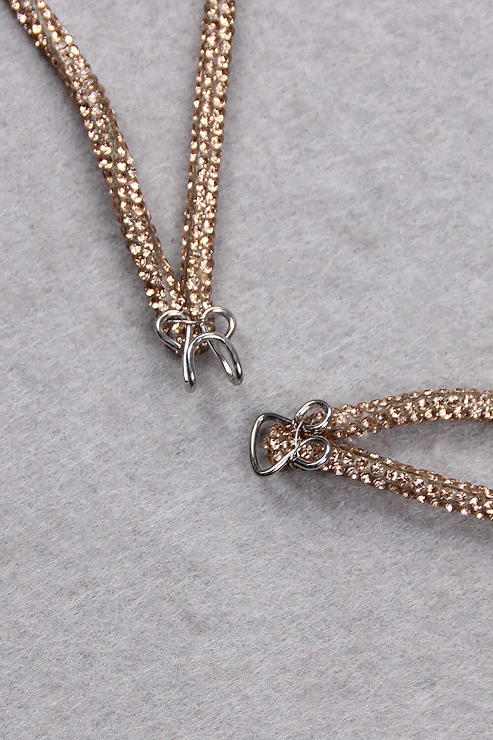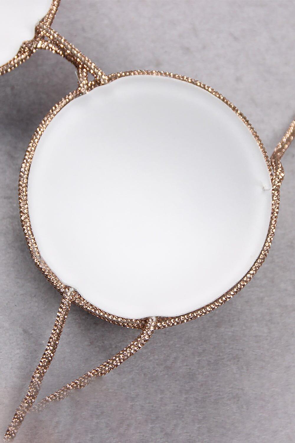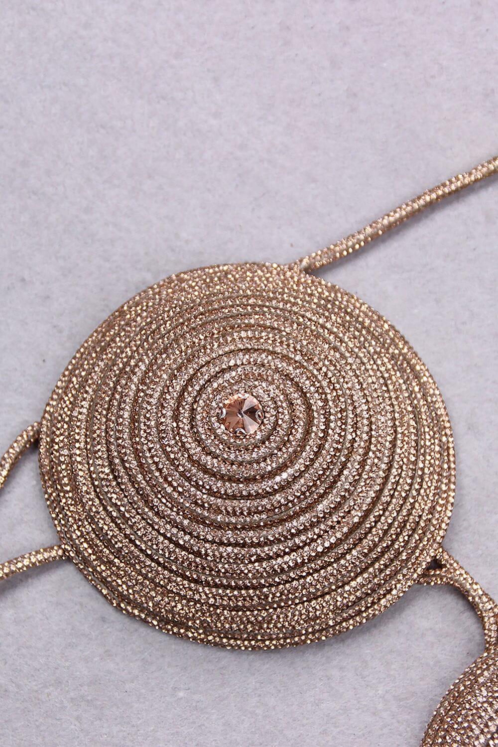Elevate your style and make a statement with our Rhinestone Embellished Silk Bra Top in Gold. Shop now and be the center of attention wherever you go!
