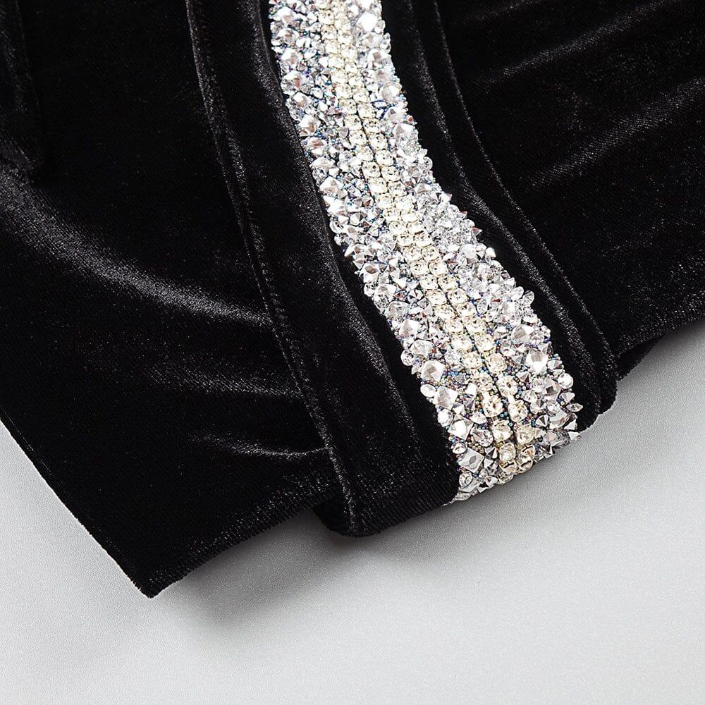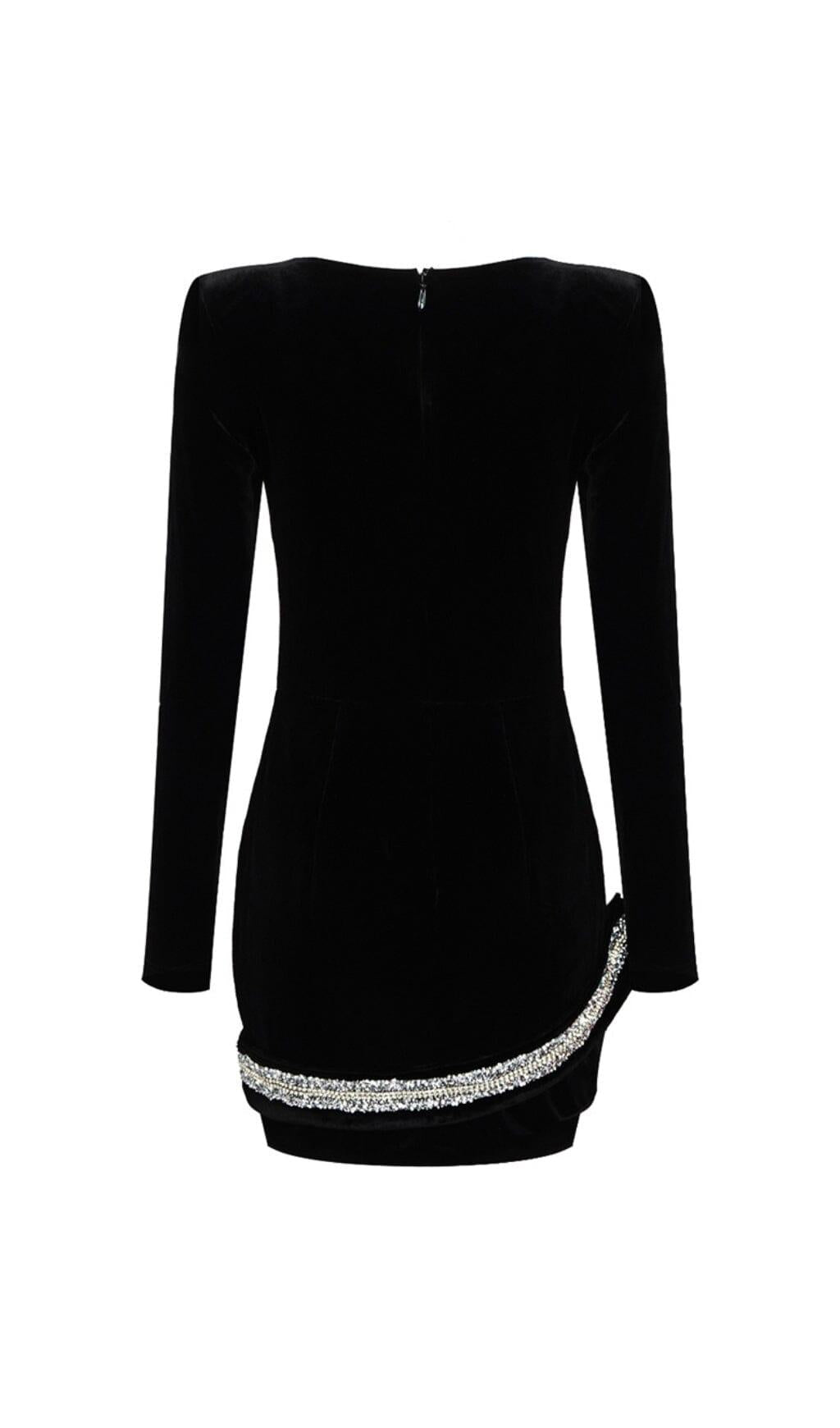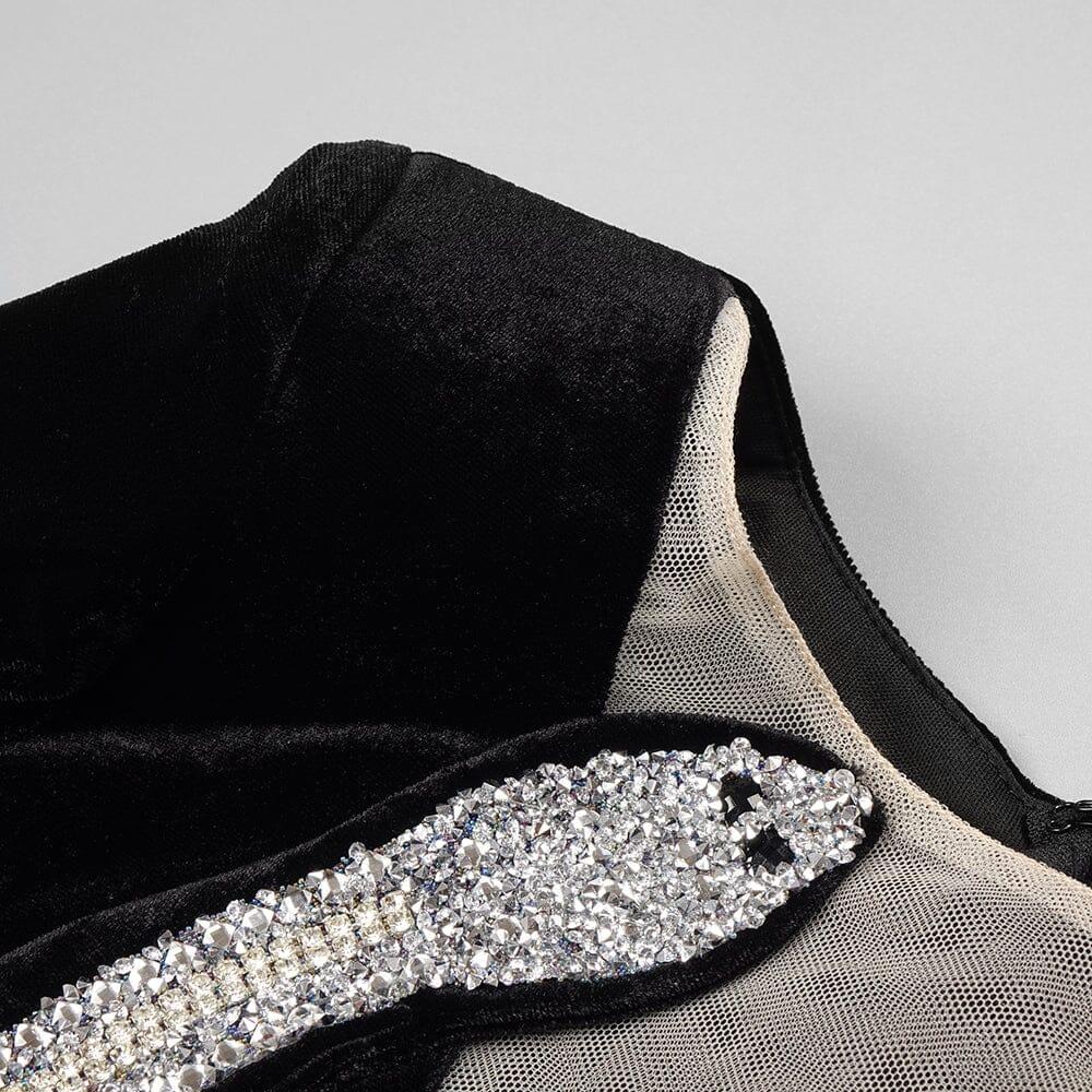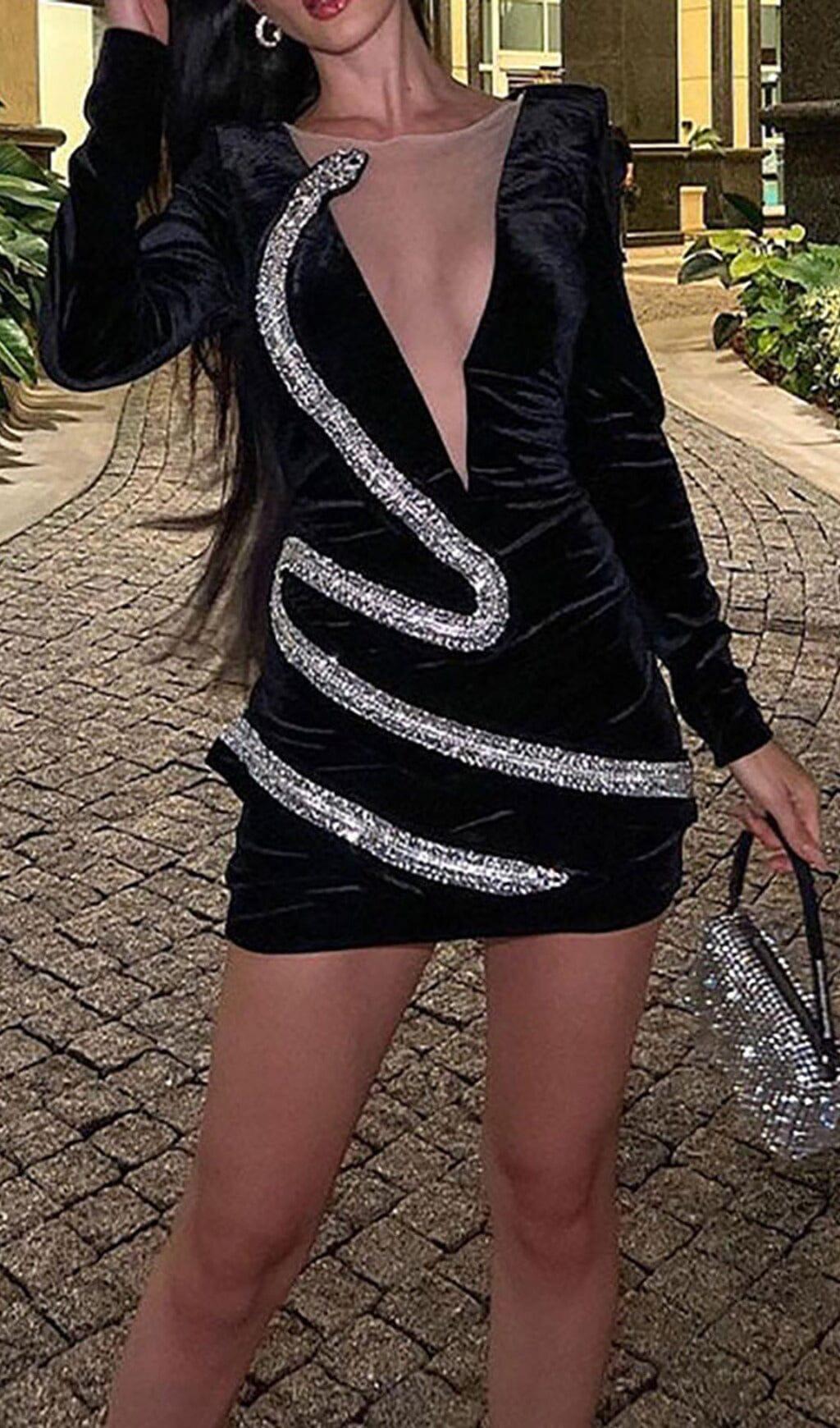 RHINESTONE SERPENTA DEEP-V VELVET MINI DRESS