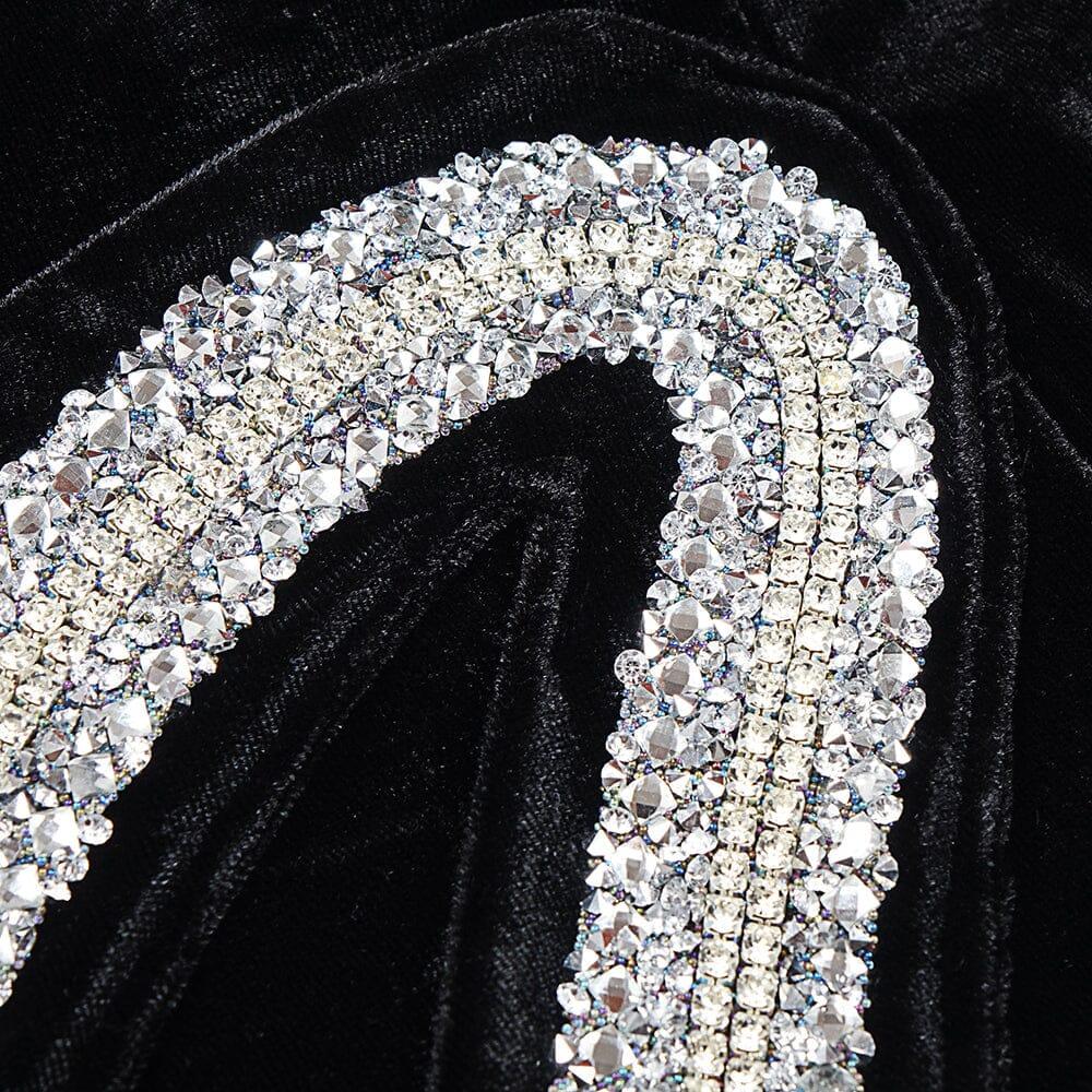 Introducing our Rhinestone Serpenta Deep-V Velvet Mini Dress, a stunning and glamorous addition to your wardrobe. This dress is perfect for those special occasions where you want to make a statement and turn heads. Whether it's a wedding, cocktail party, or a night out with your girls, this dress is designed to make you feel confident and beautiful.