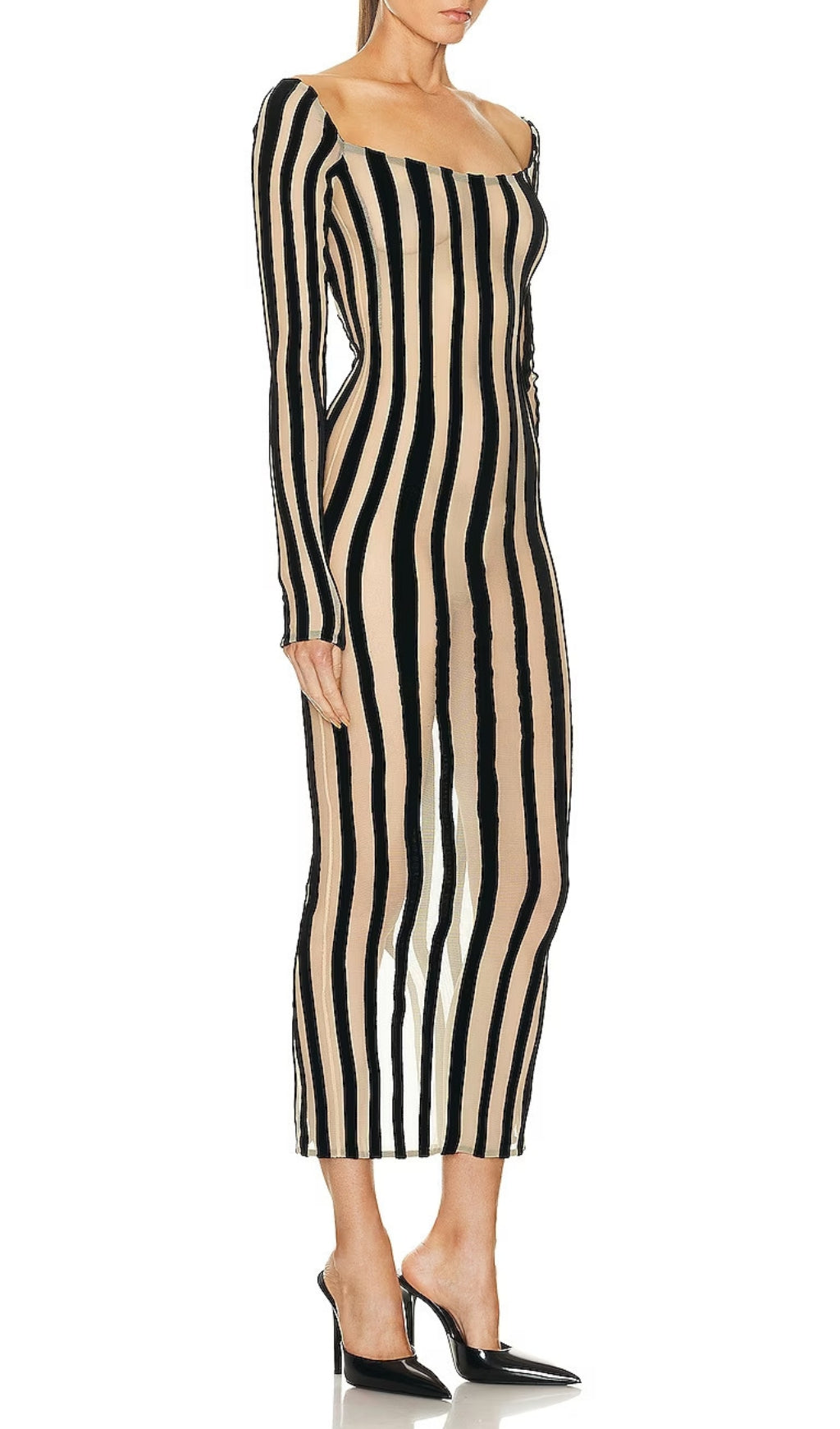 ARYEH OFF SHOULDER STRIPE MESH DRESS