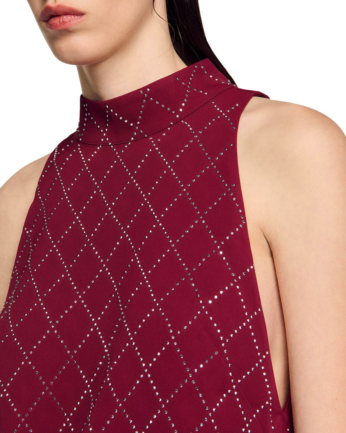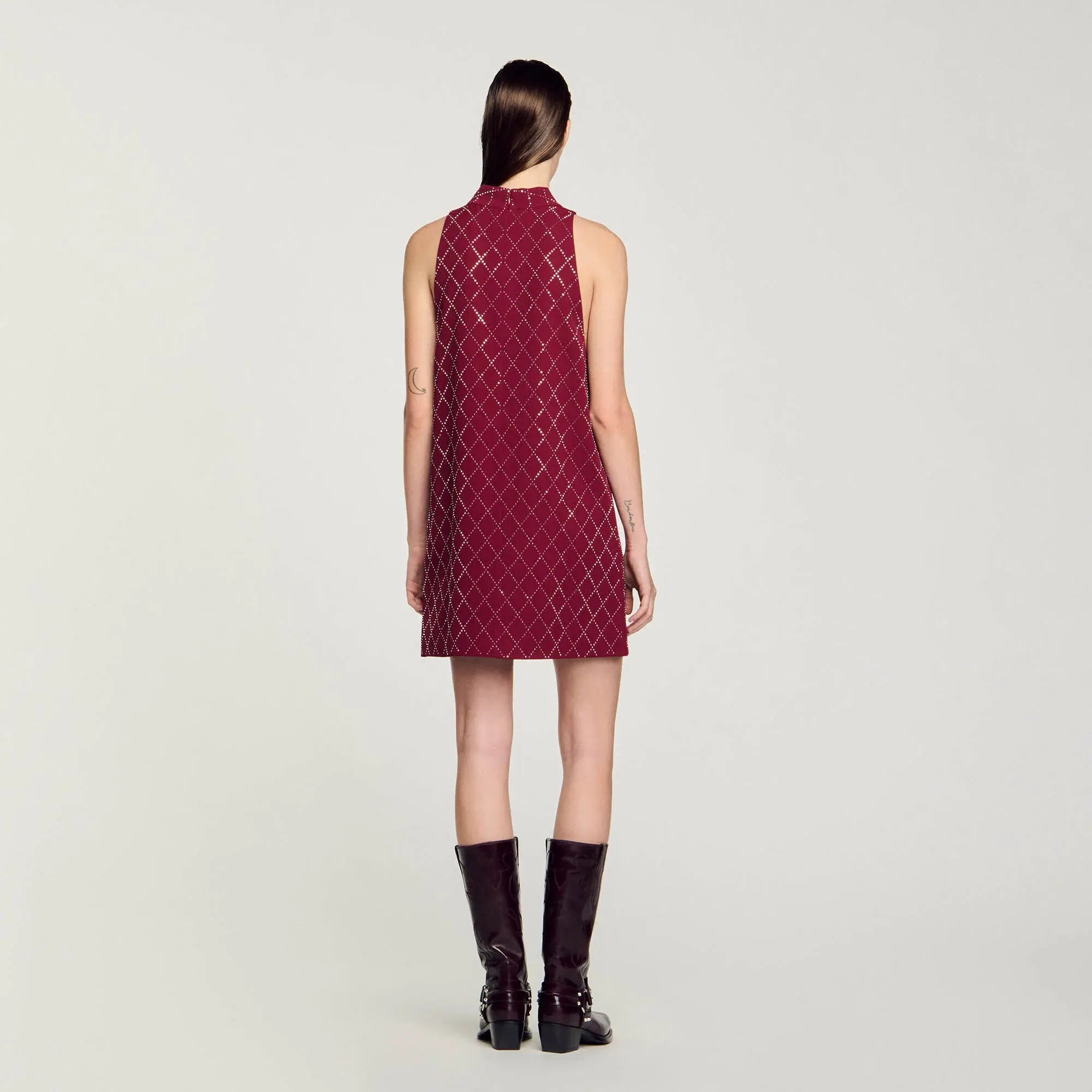RIVA DIAMOND-SHAPED RHINESTONE PATTERN BORDEAUX MINI DRESS