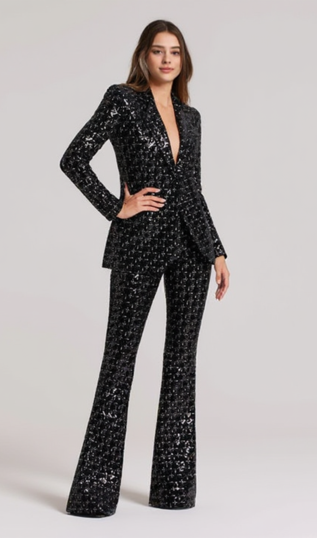 This stunning Rizia Sequin Blazer Two Piece Set exudes luxury and sophistication. The sparkling sequin details add a touch of glamour, while the two-piece set design allows for versatility and effortless elegance. Perfect for any occasion, this set is a must-have for the fashion-forward and discerning individual.