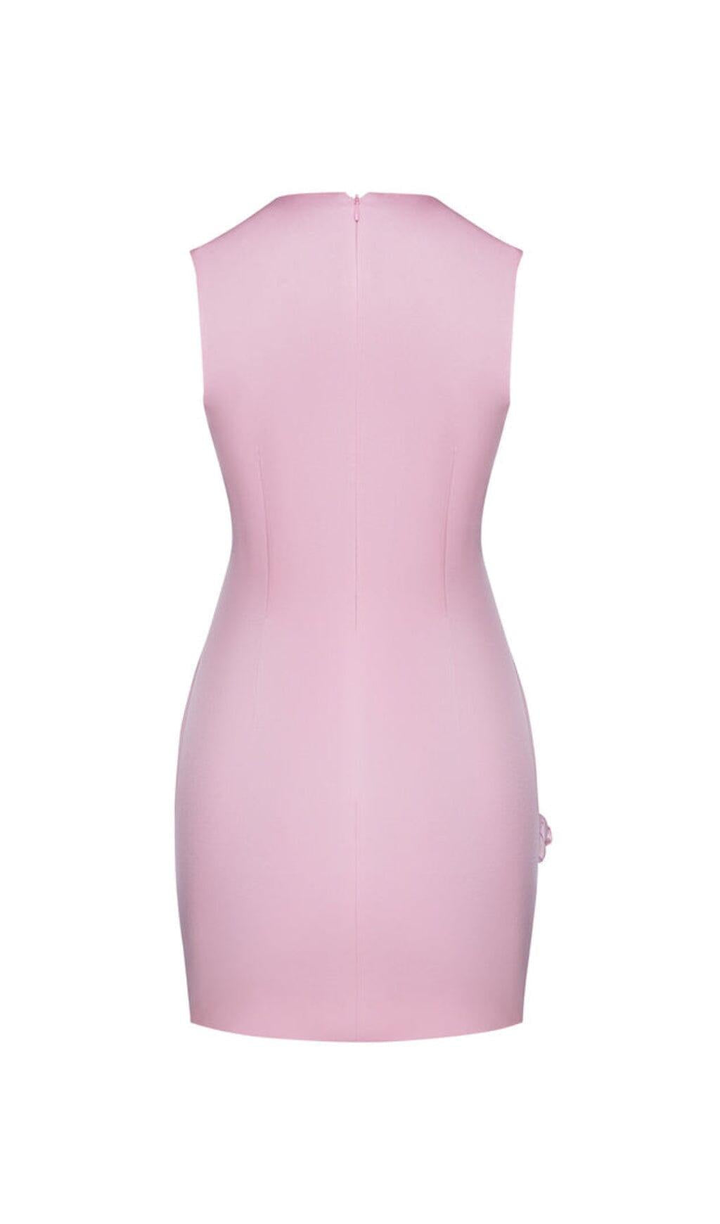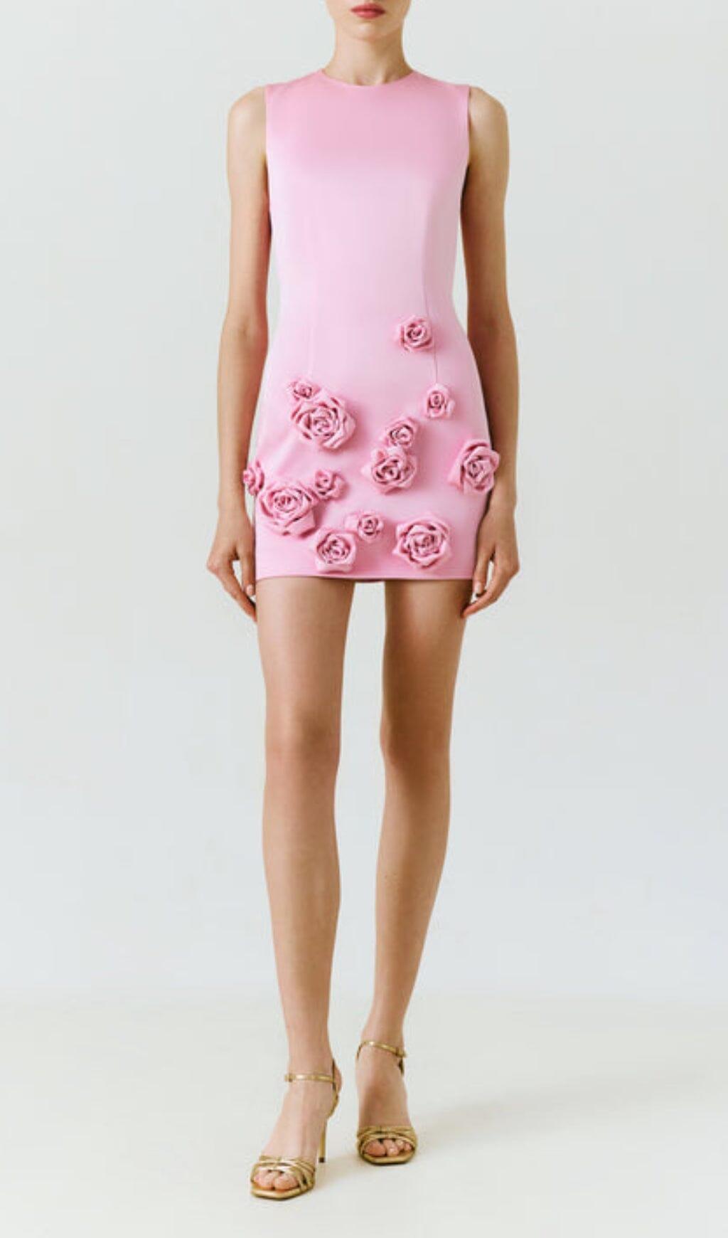 ROSE-APPLIQUÉ ROUND NECK CADY MINI DRESS