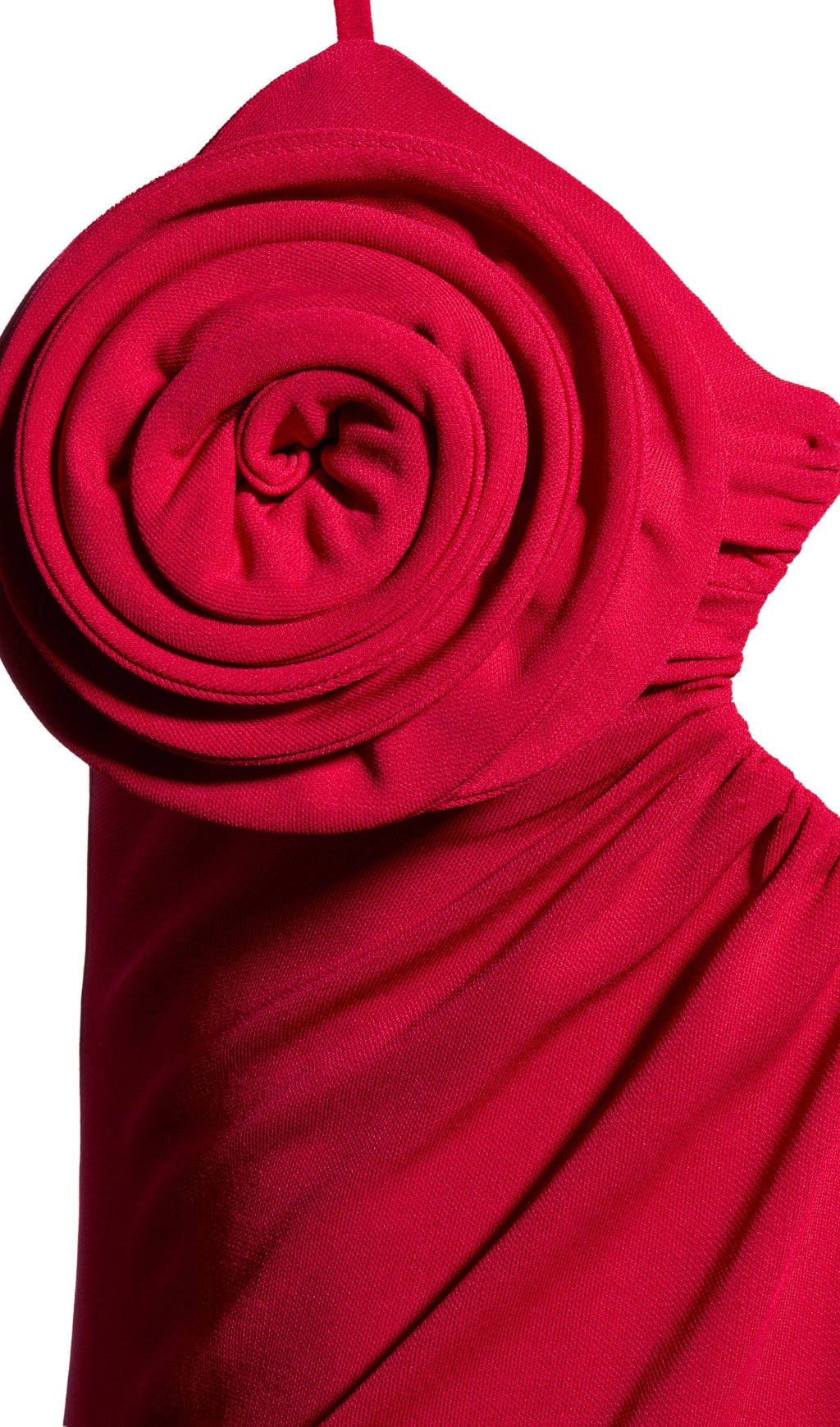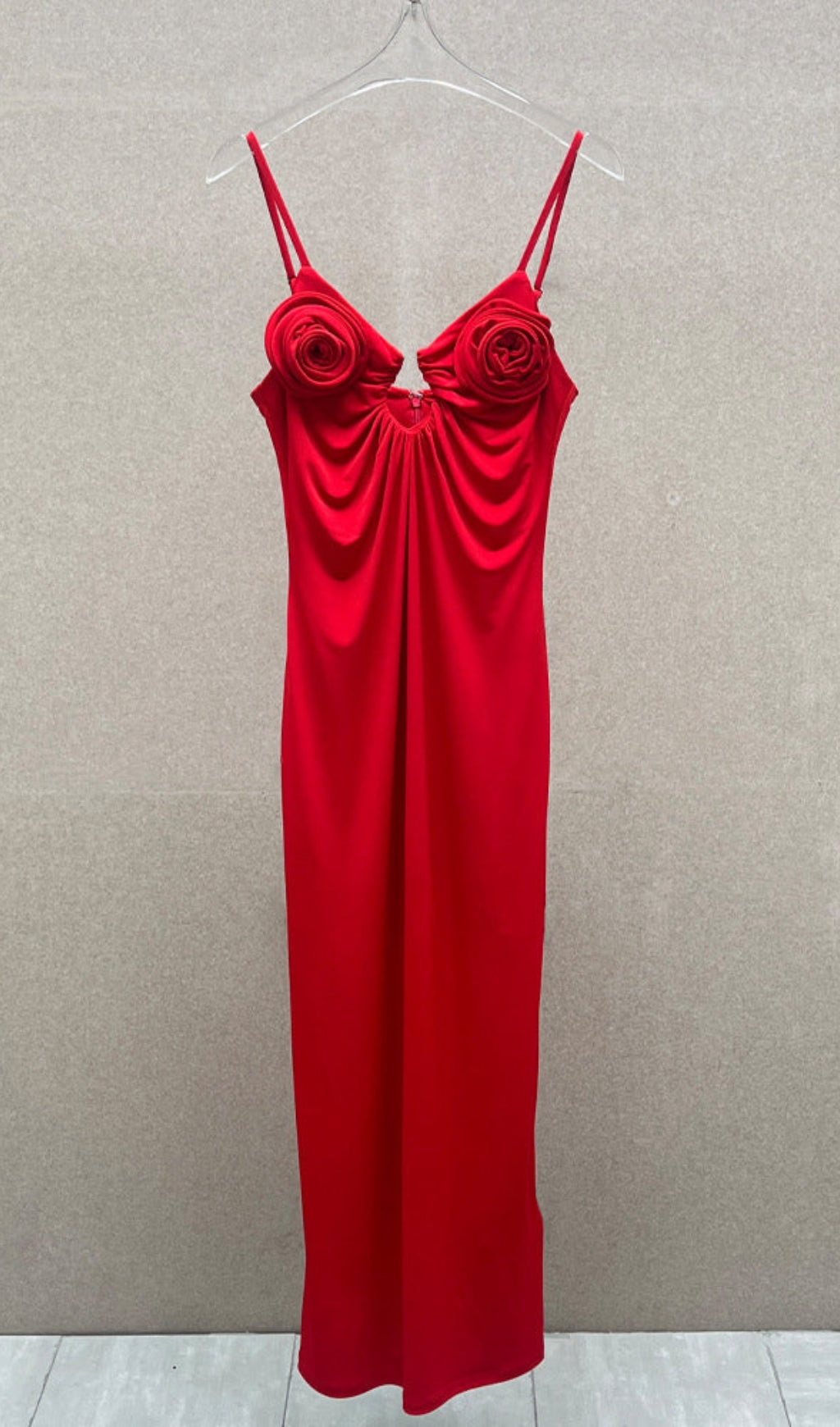 ROSE APPLIQUÉ STRAPPY MAXI DRESS IN RED