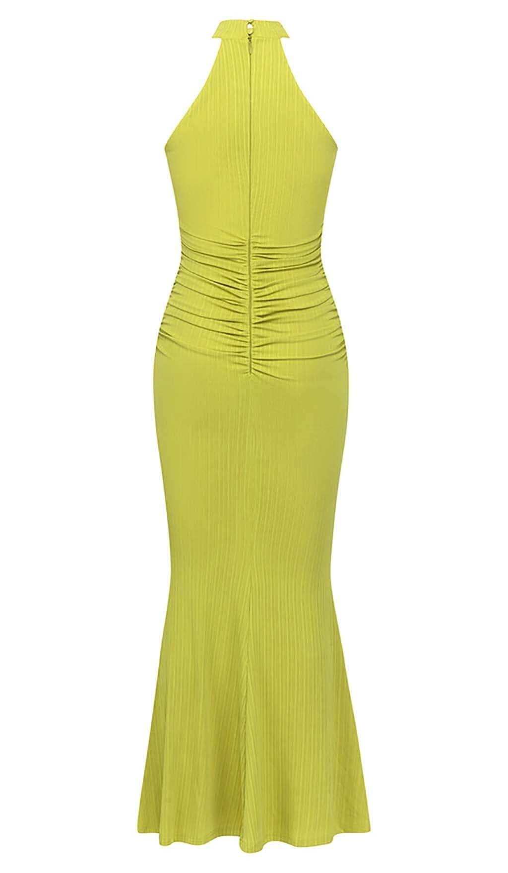 ROSE-EMBELLISHED HALTER MAXI DRESS IN FADED GREEN