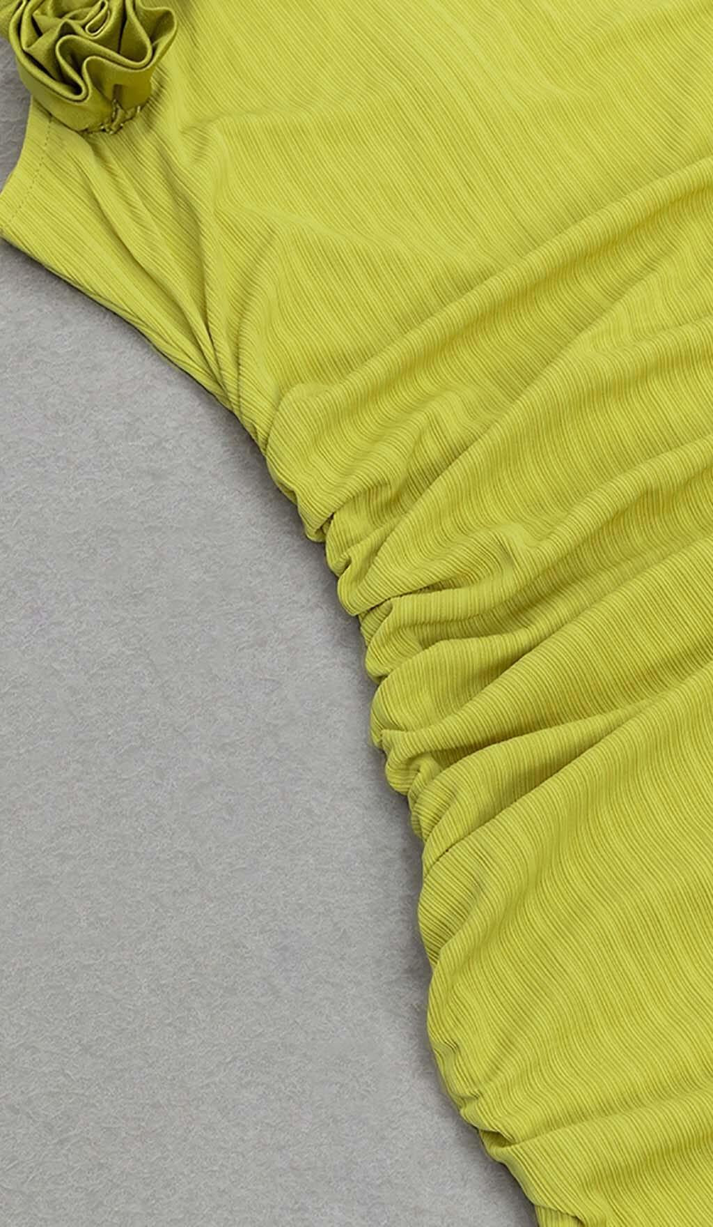 Elevate your style and make a lasting impression with this rose-embellished halter maxi dress in faded green. Order yours today and experience the perfect blend of romance, femininity, and elegance.