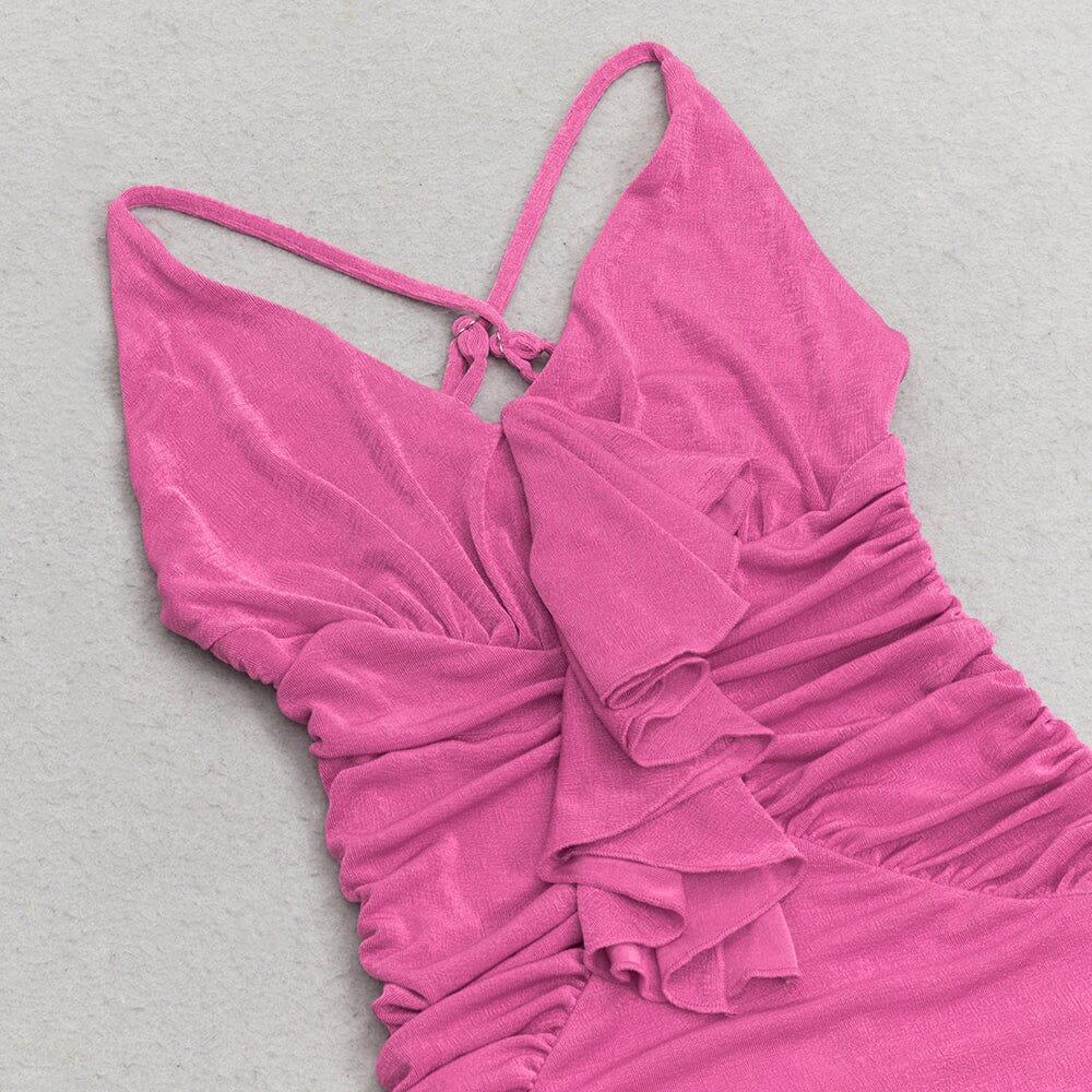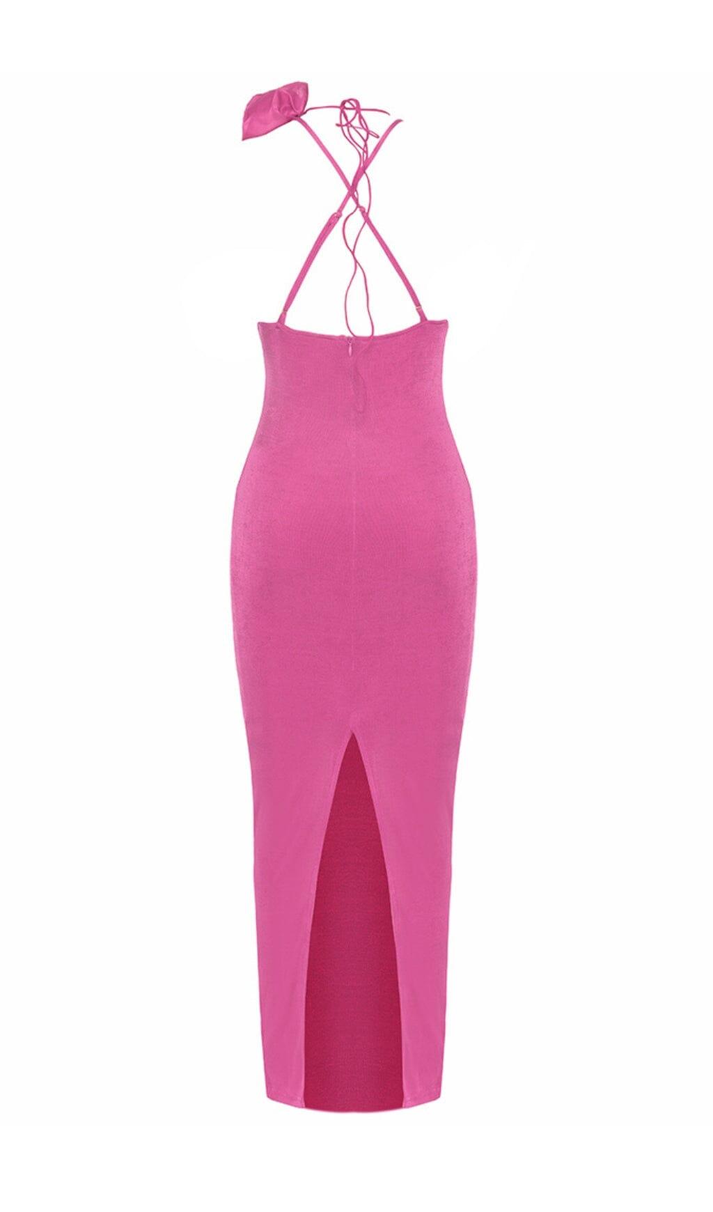 ROSE EMBELLISHED RUFFLED MIDI DRESS IN PINK