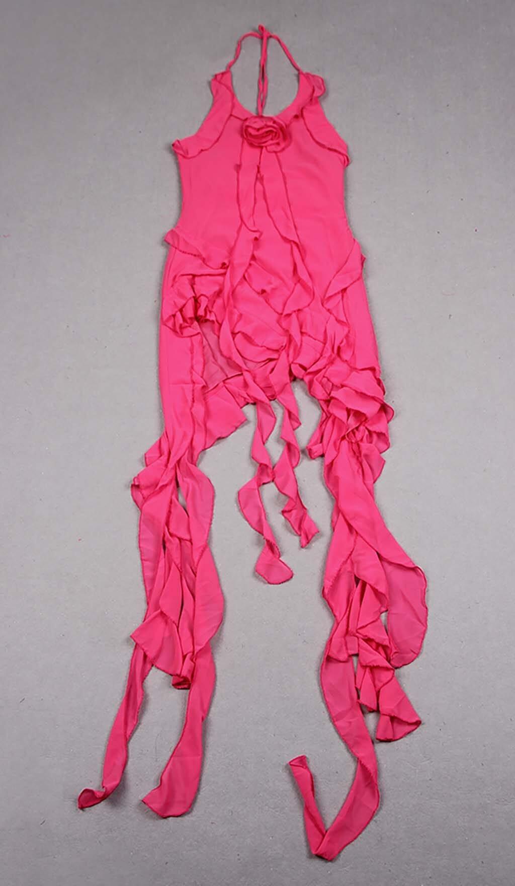 • Add a touch of elegance to your wardrobe with this stunning ruffled mini dress in pink.