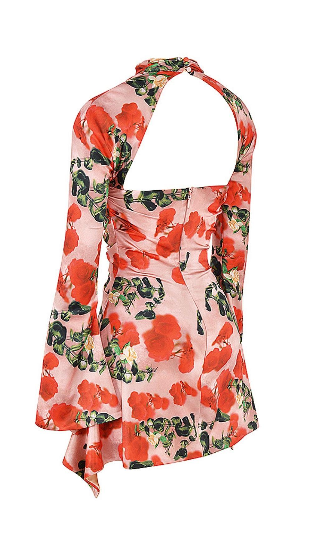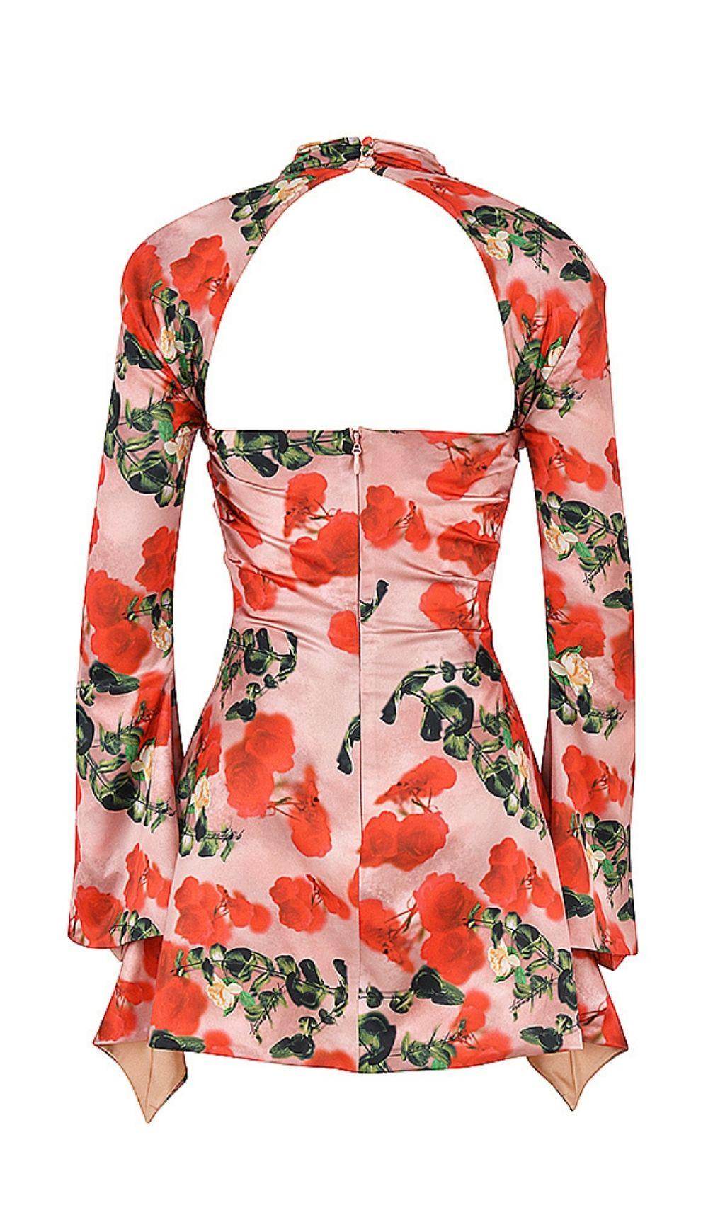 ROSE PRINT CUT OUT DRAPED MINI DRESS