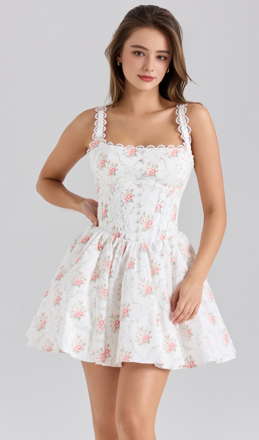 In Aiizie's fashion world, this rose-printed stretch cotton mini skirt is the embodiment of spring romance. Made of selected stretch cotton fabric, it fits the body like a second skin, bringing unparalleled comfort. On the skirt, the sweet floral print is like a lively elf, outlining the poetic picture of spring.