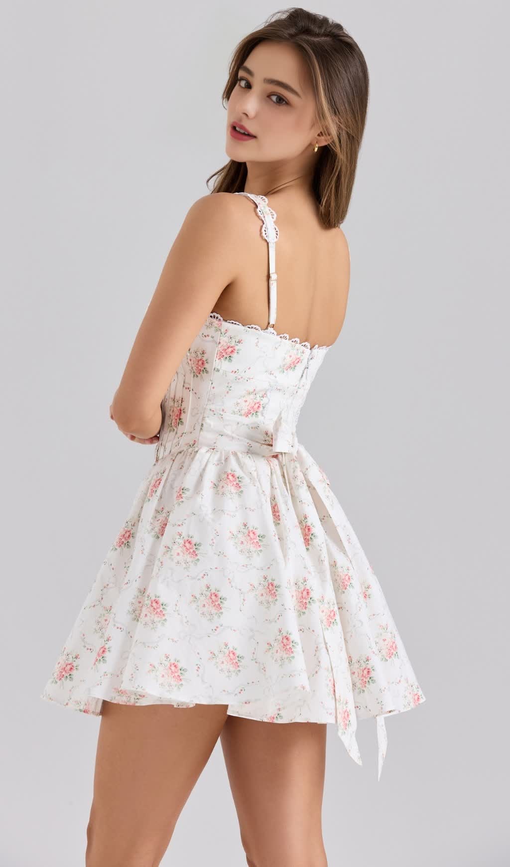 ENCHANTING ROSE PRINT STRETCH COTTON MINI DRESS