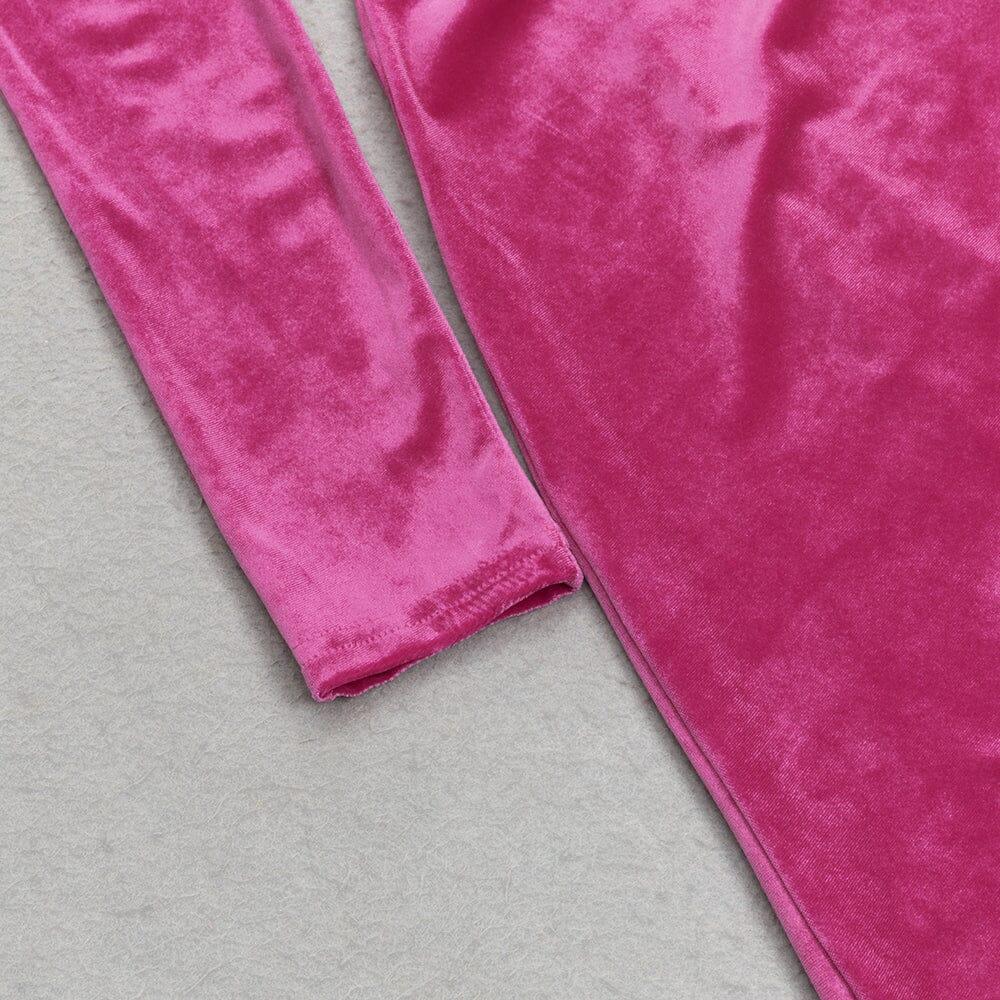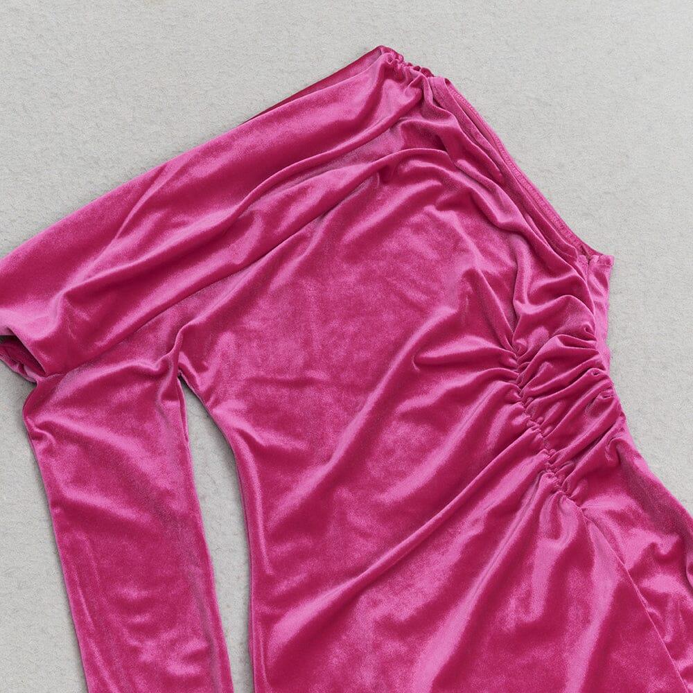 ROSE RED ONE-SHOULDER LONG-SLEEVED SLIT MAXI DRESS