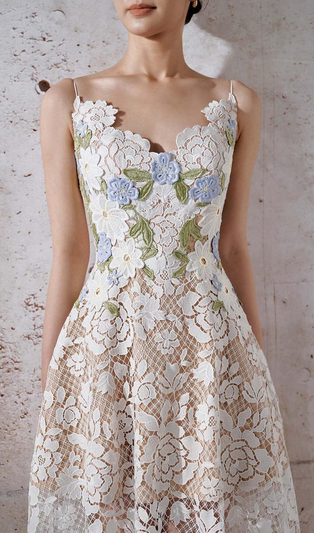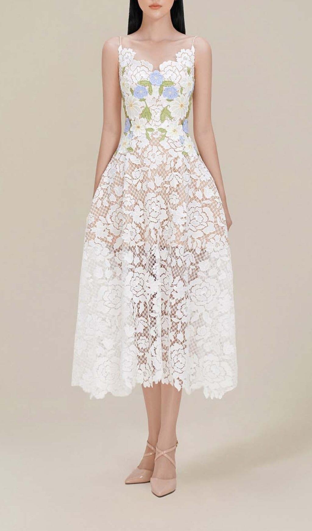 ROSES LACE A-LINE MIDI DRESS IN WHITE