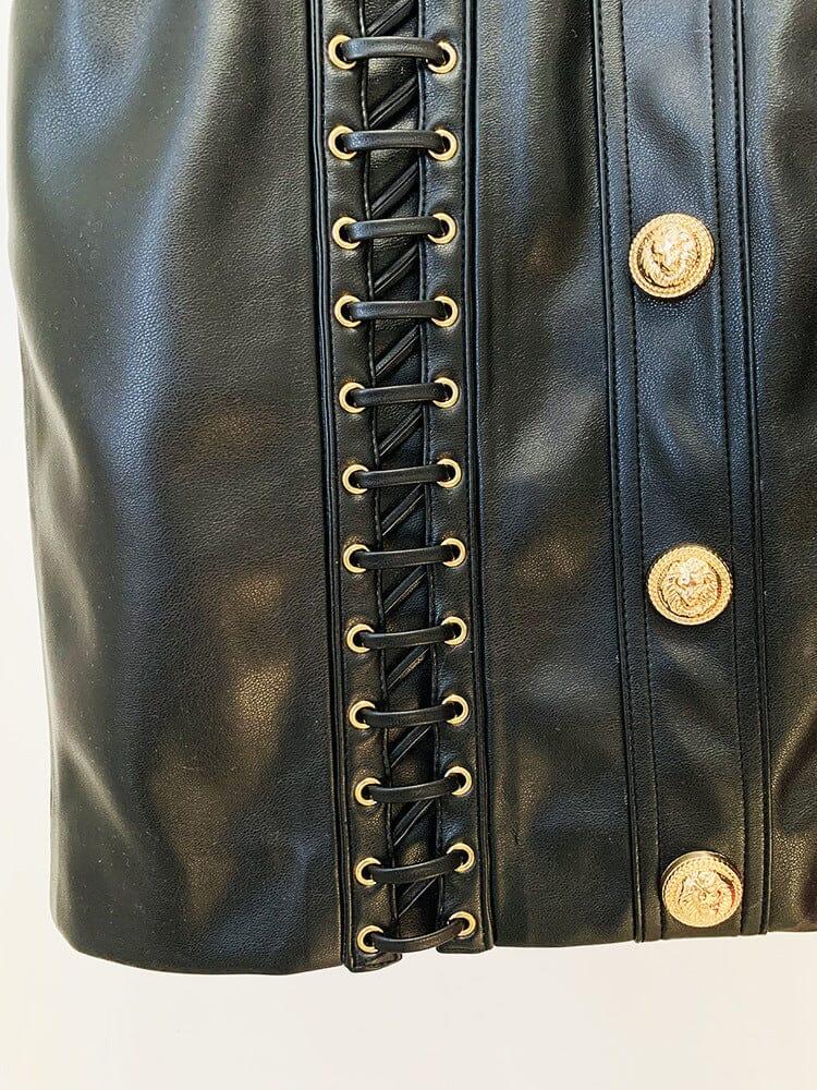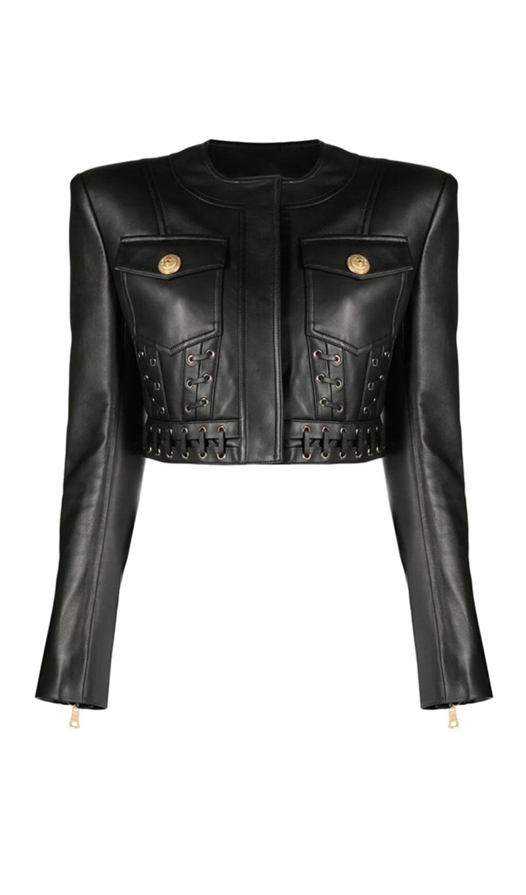 ROUND NECK HEAVY DUTY ROPE SHORT LEATHER JACKET SUIT