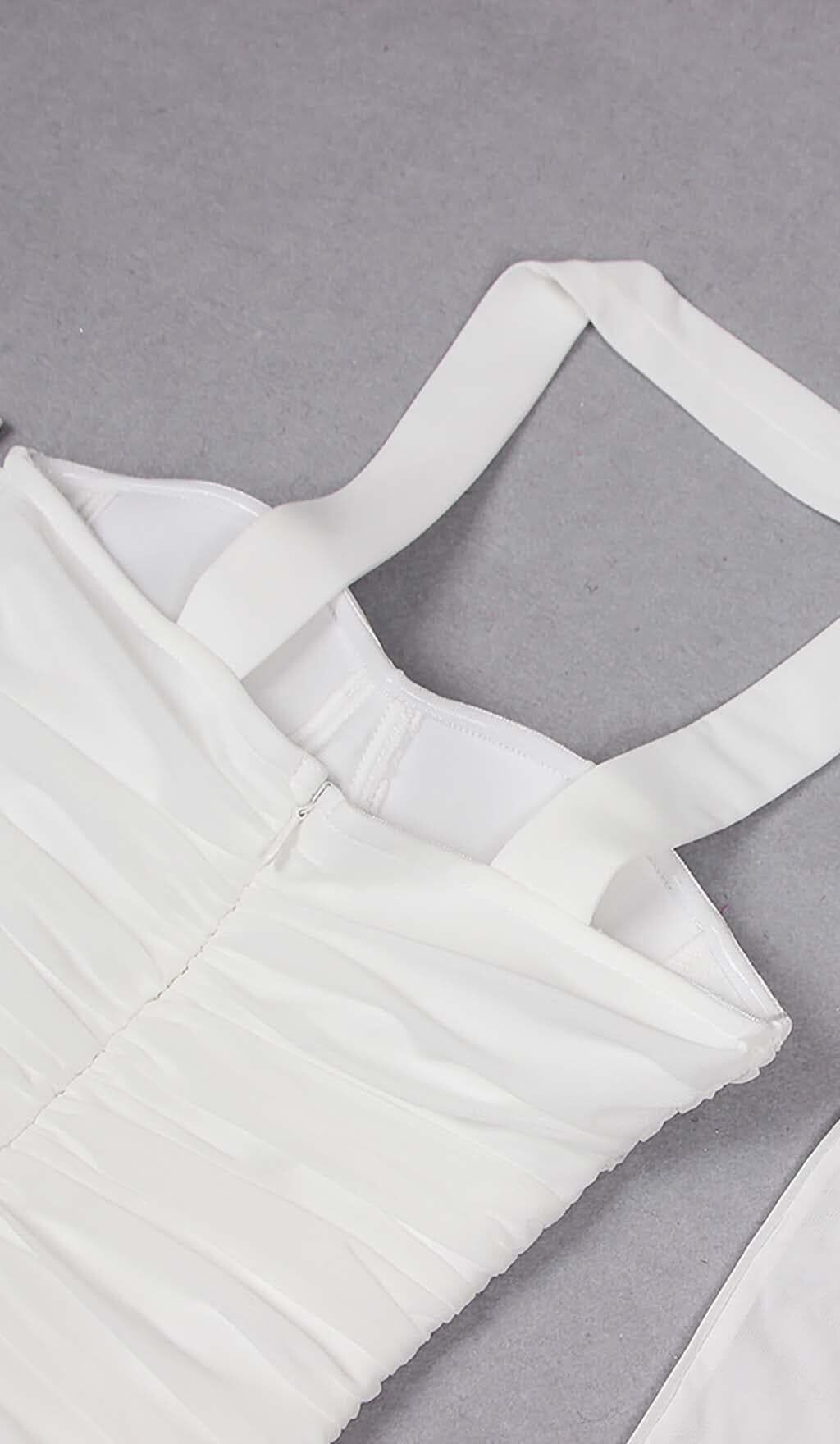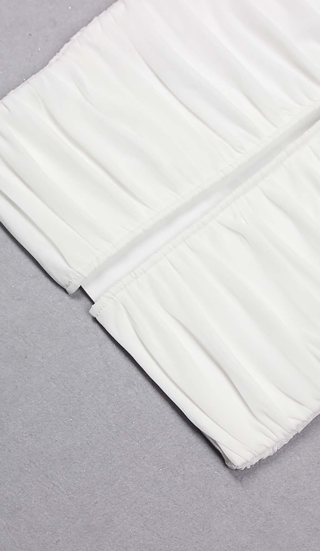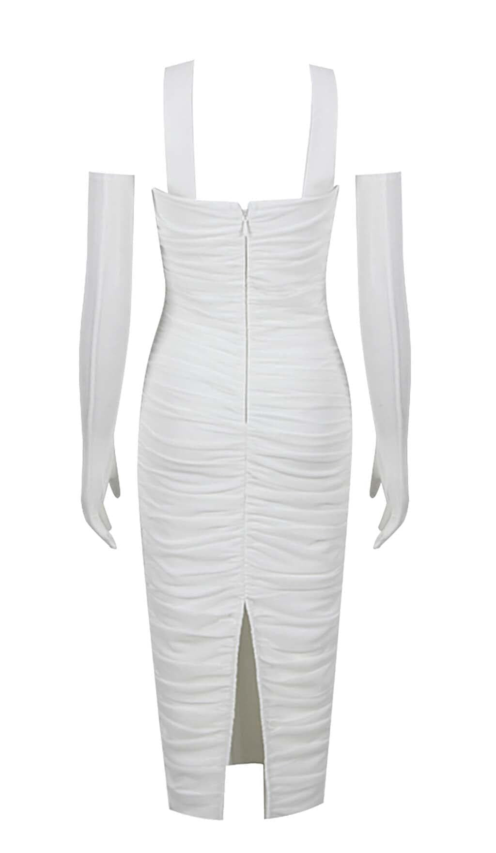 RUCHED BANDEAU MIDI DRESS IN WHITE