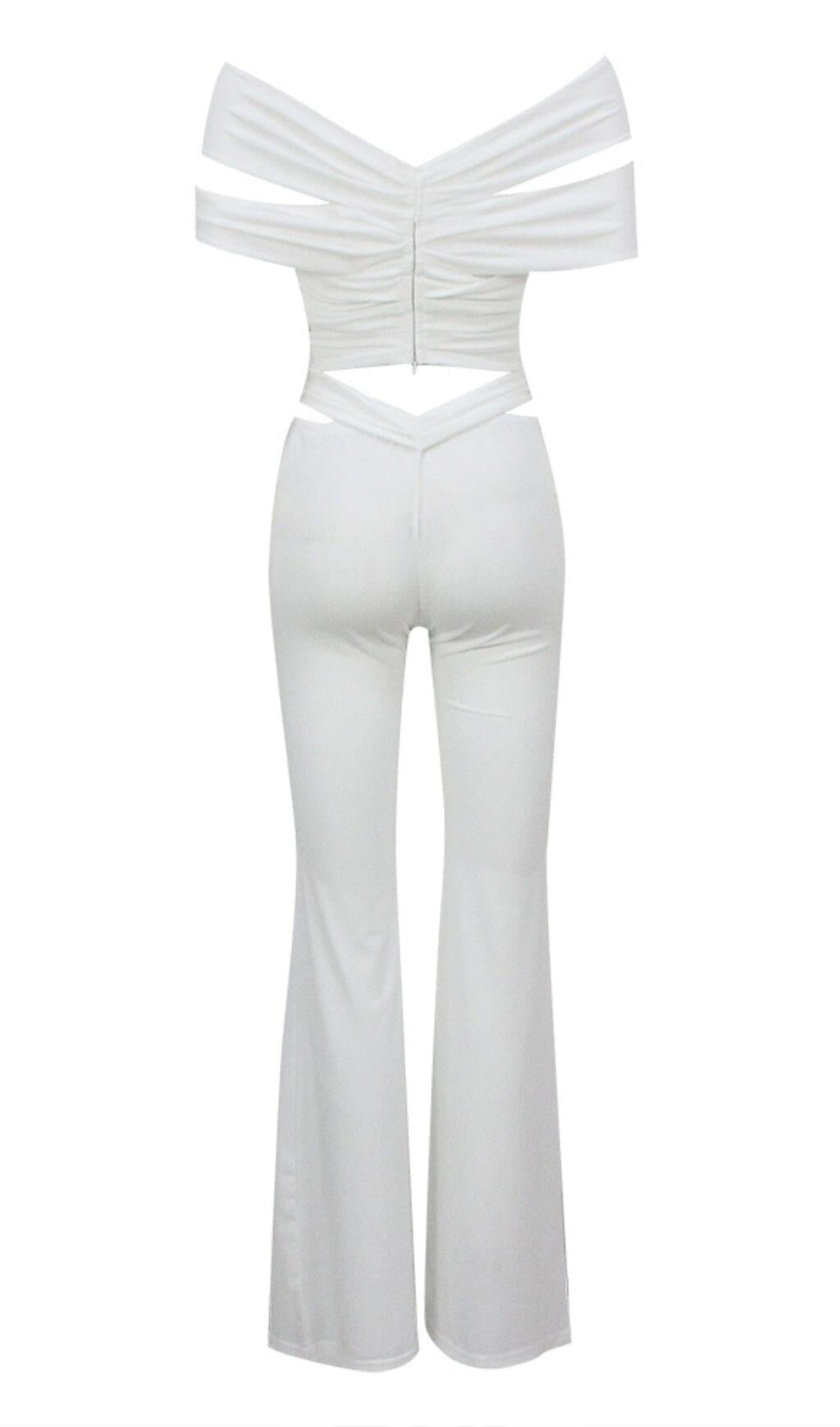 RUCHED CUTOUT FLARED TWO PIECE SET IN WHITE