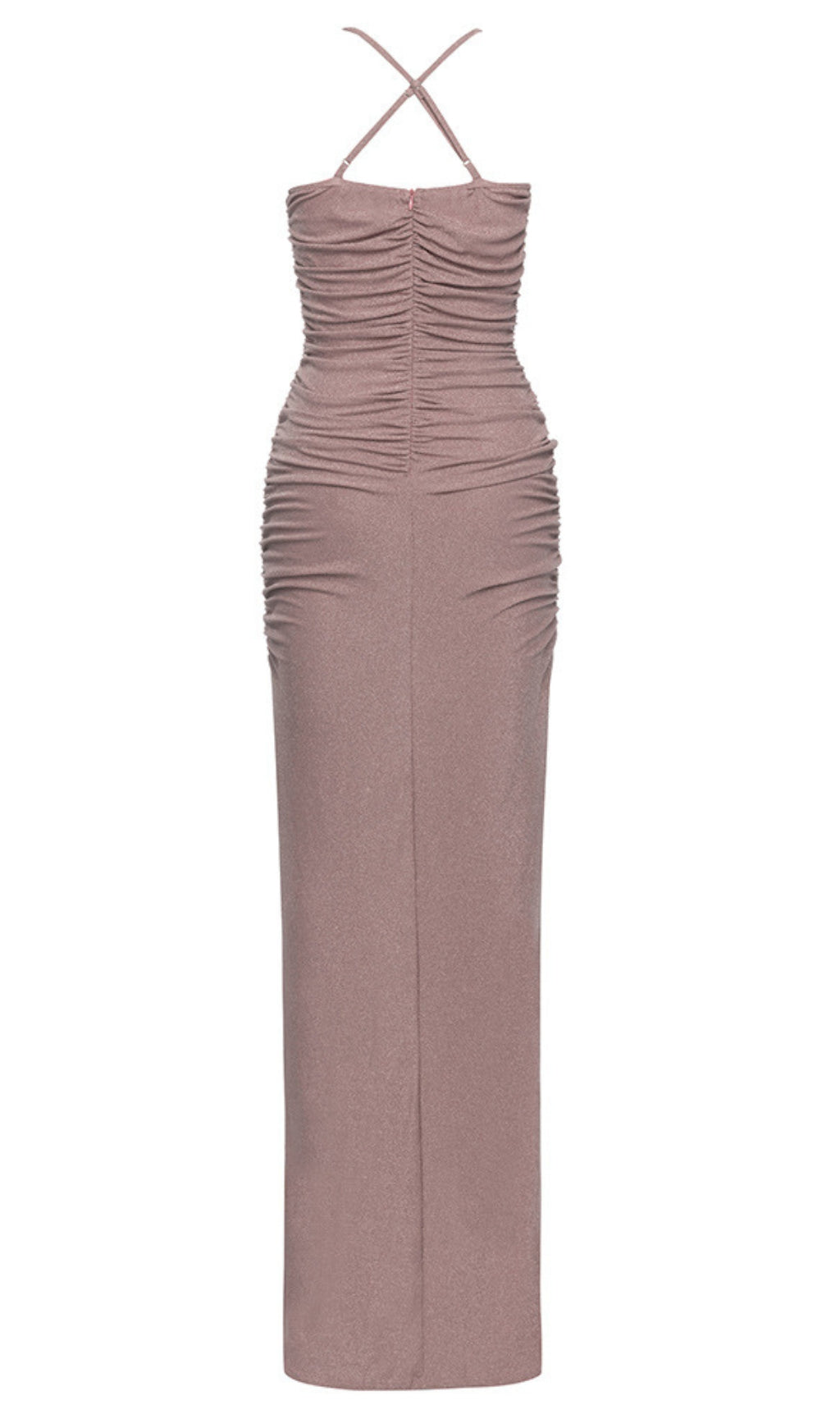 This dress features a blush - toned fabric, halter neckline, ruched detailing, and a side slit. The body - hugging maxi silhouette is alluring. Ideal for ��holiday break dress to impress�� gatherings, as ��hoco dress inspo�� for homecoming, or a ��celebrity event dress to impress�� occasion. Its glamorous, figure - flattering style lets you ��dress to impress�� with confidence, perfect for formal events, parties, or special outings to stand out.
