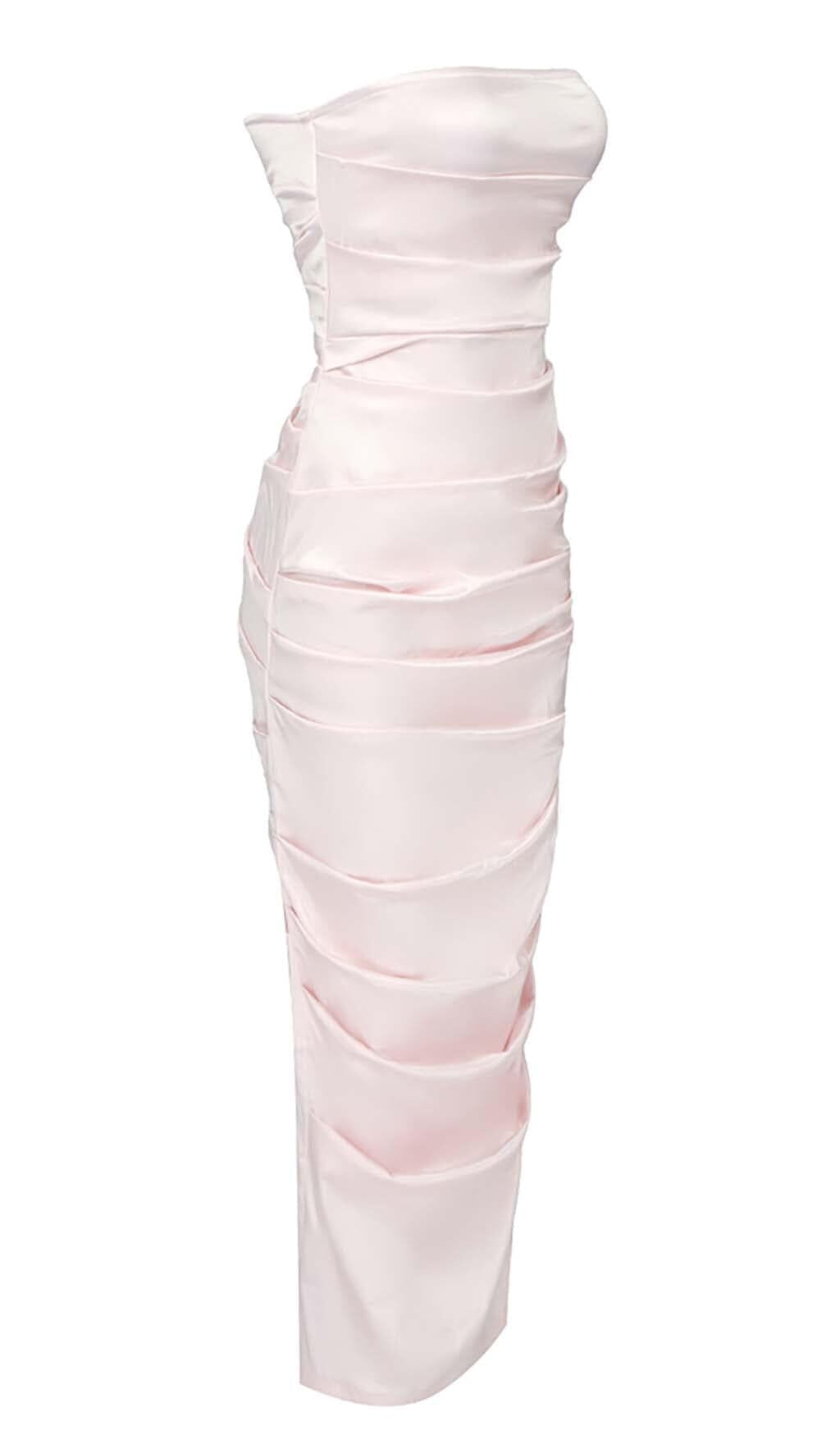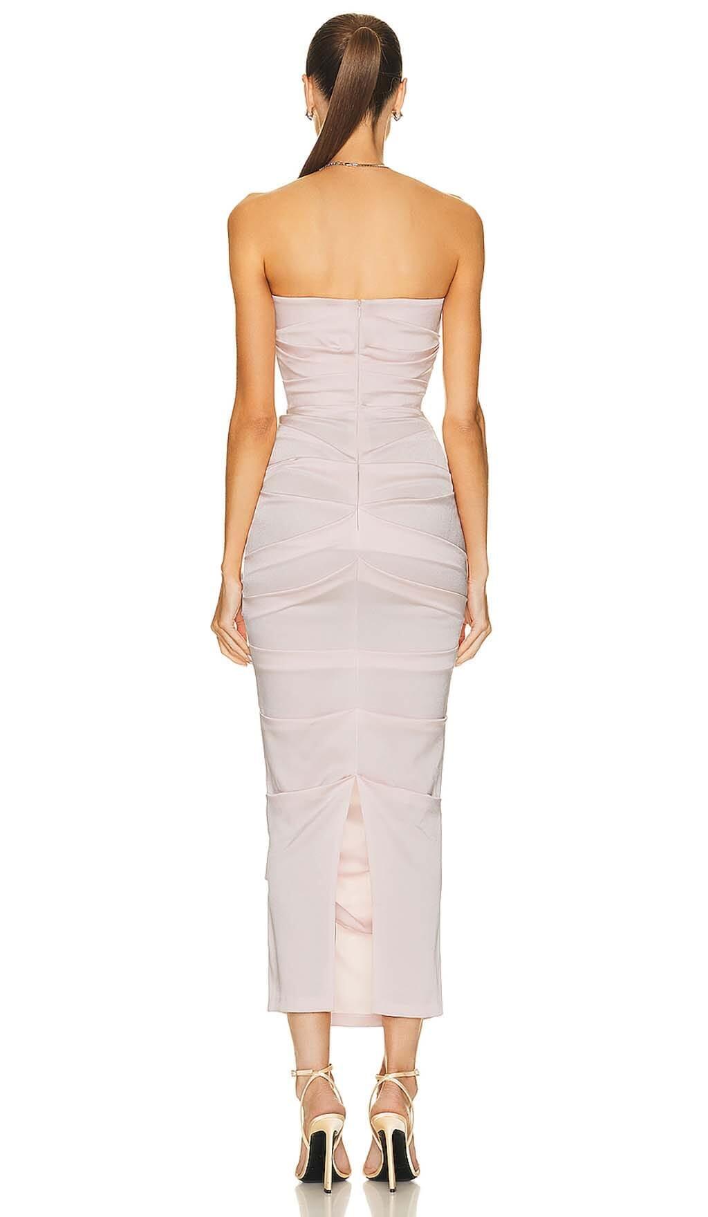 RUCHED OFF-SHOULDER SLIM MIDI DRESS IN PINK