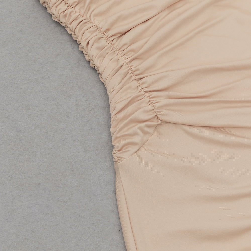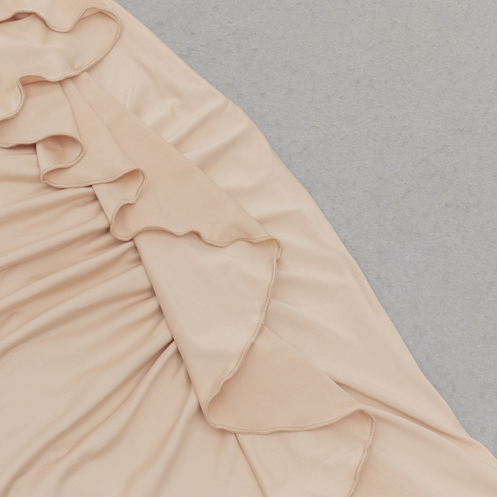 RUCHED RUFFLES SPLIT BODYCON MAXI DRESS