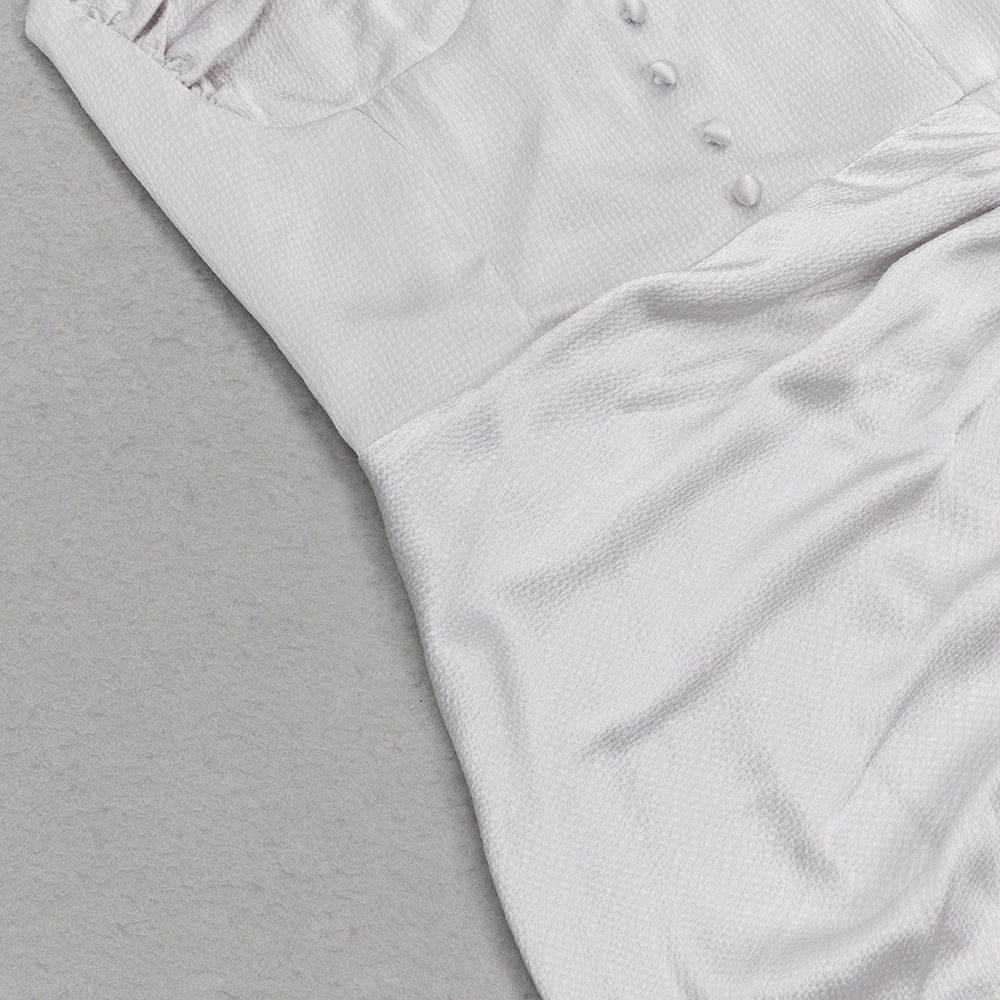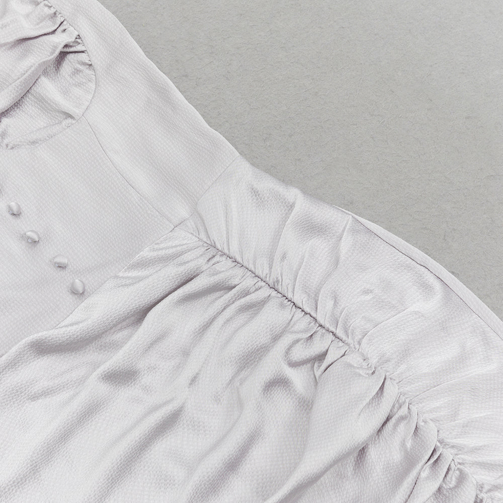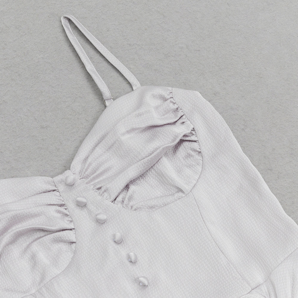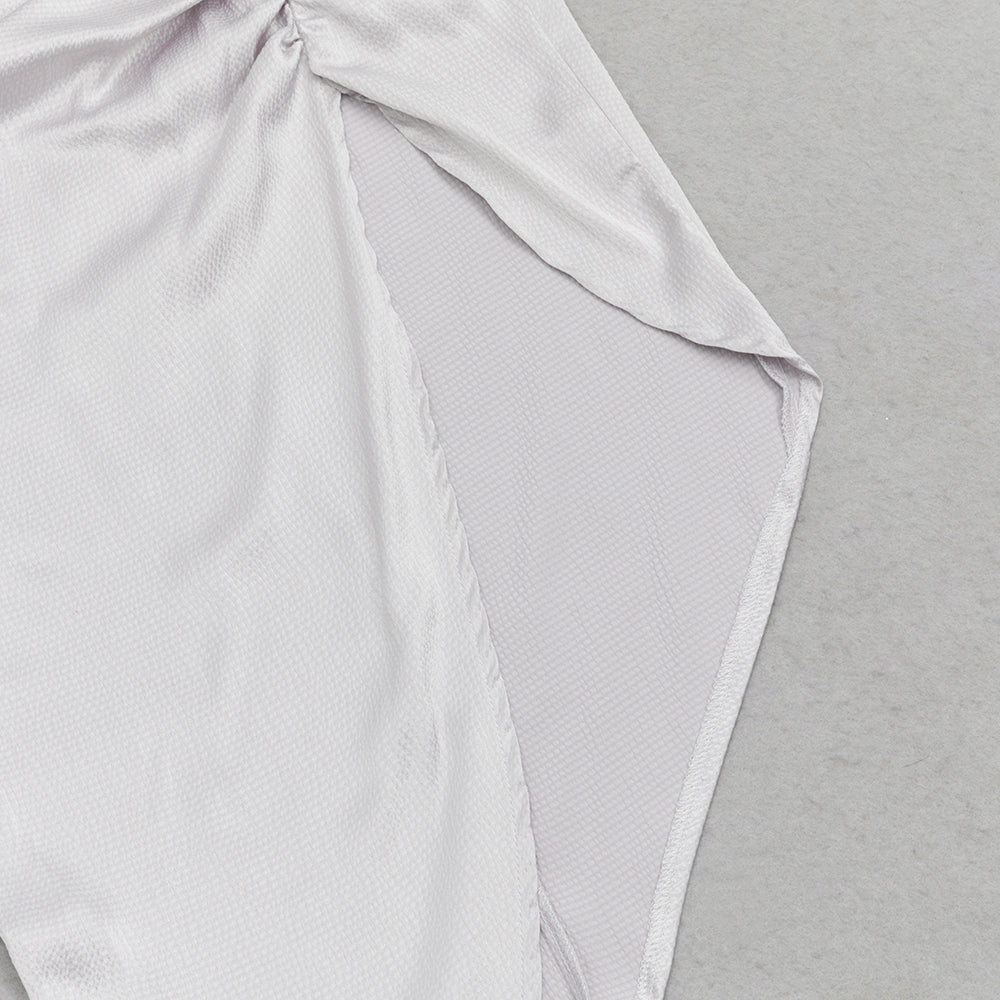 RUCHED SLIT STRAP MIDI DRESS IN LIGHT GRAY