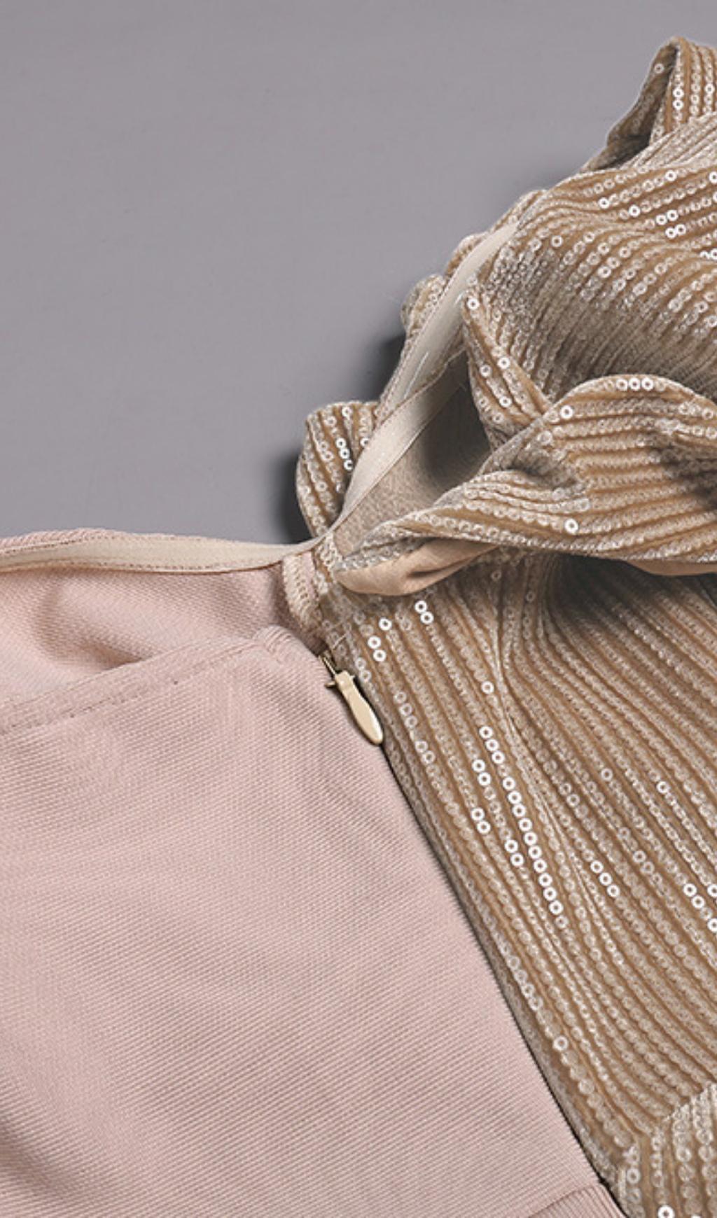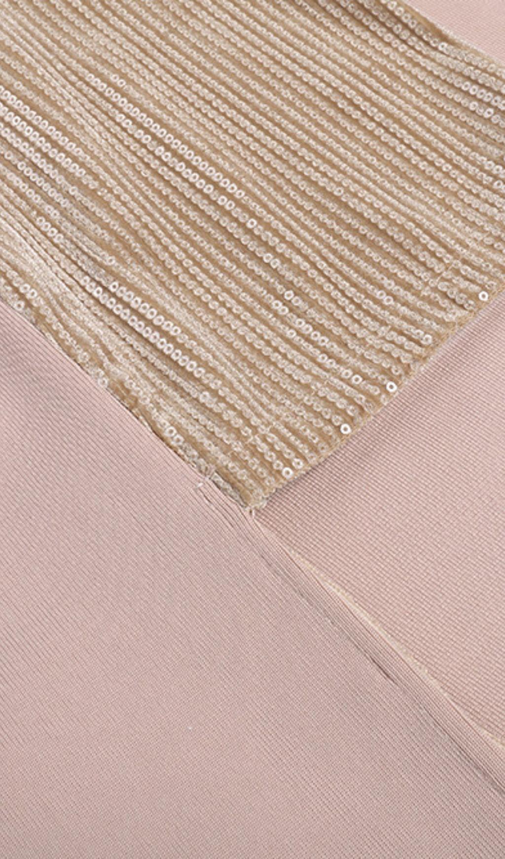 RUCHED STRAPLESS SPLICING MIDI DRESS