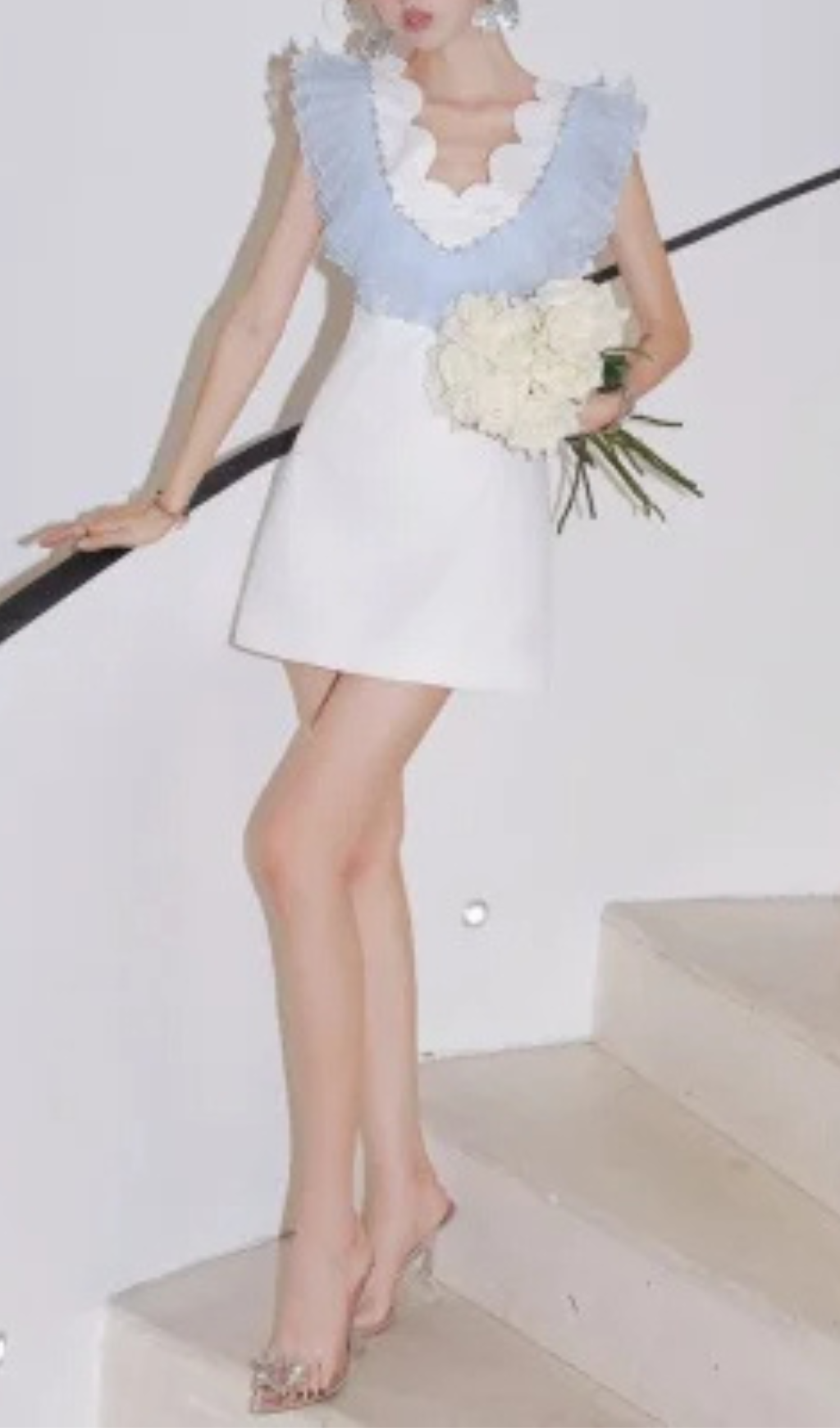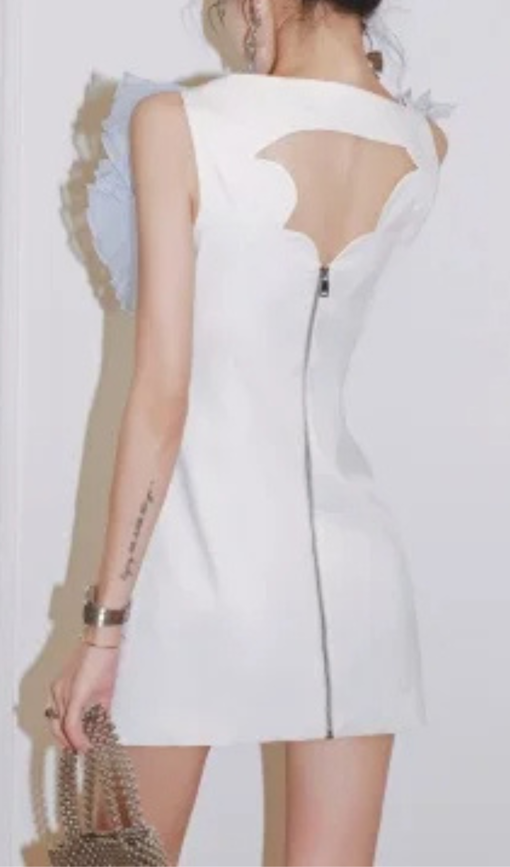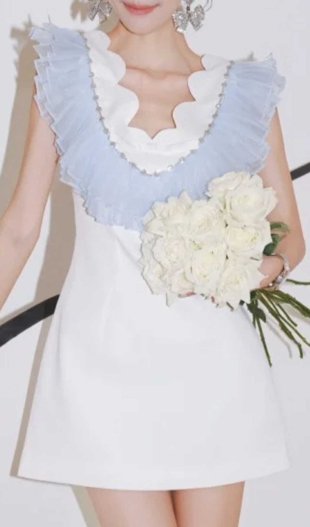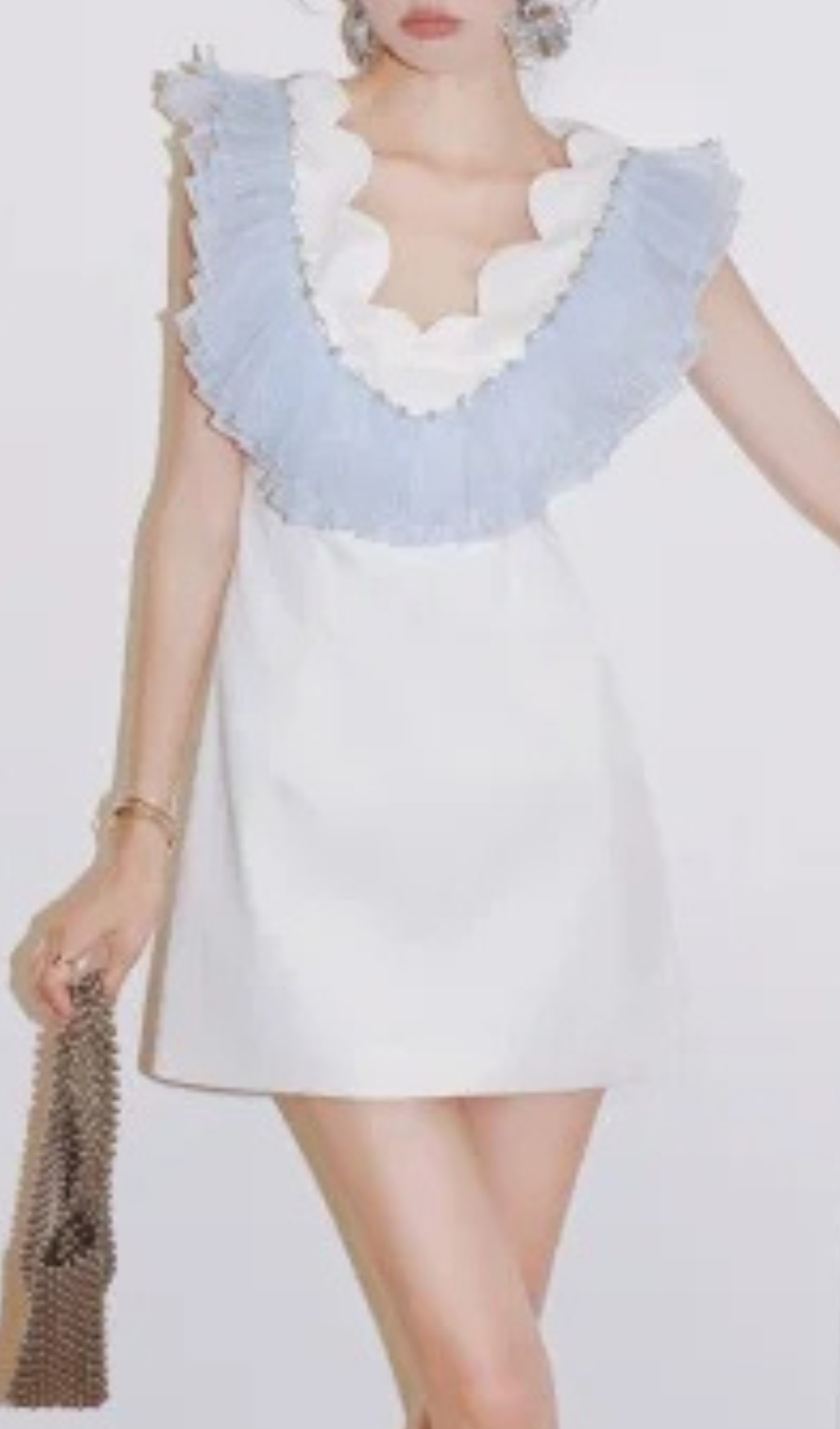 RUFFLE BEADING V-NECK MINI DRESS