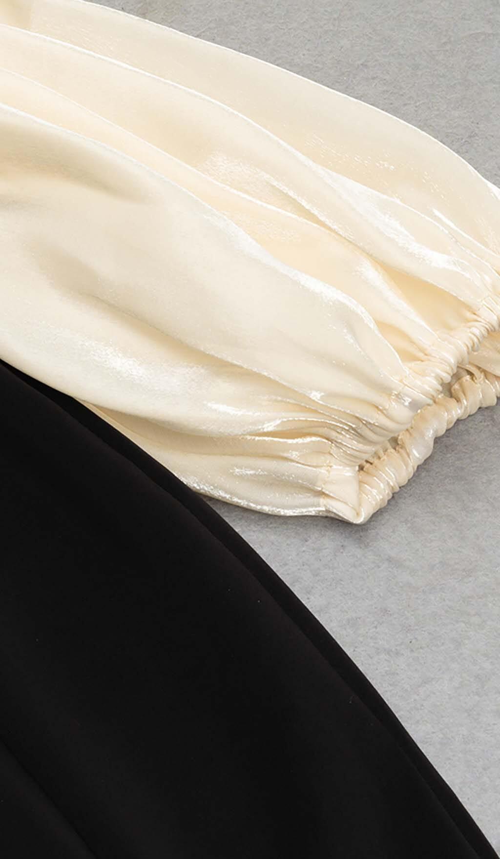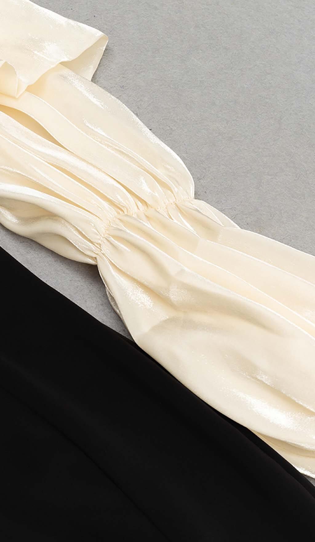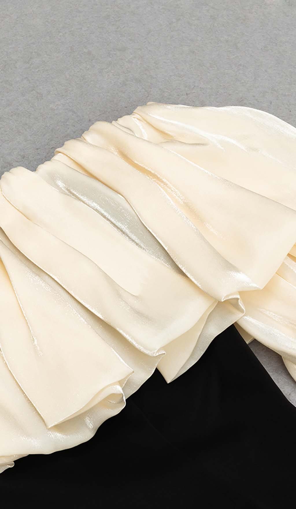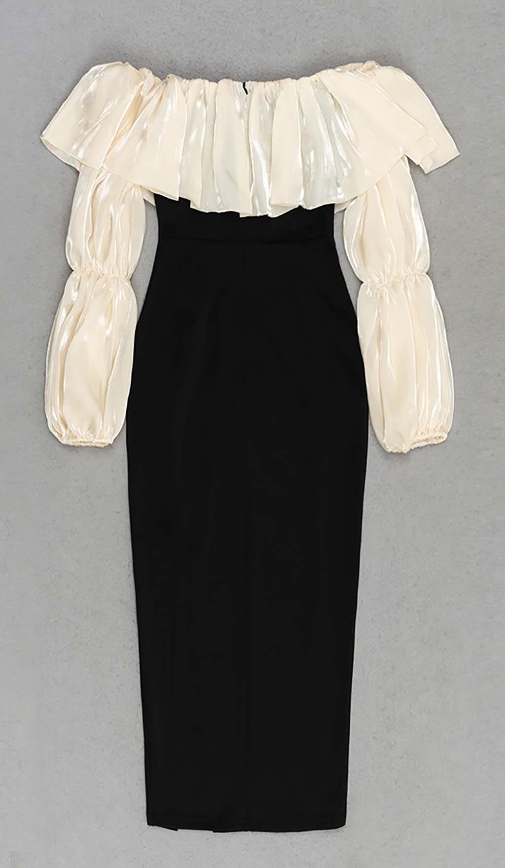 RUFFLE COLD SHOULDER MIDI DRESS IN BLACK