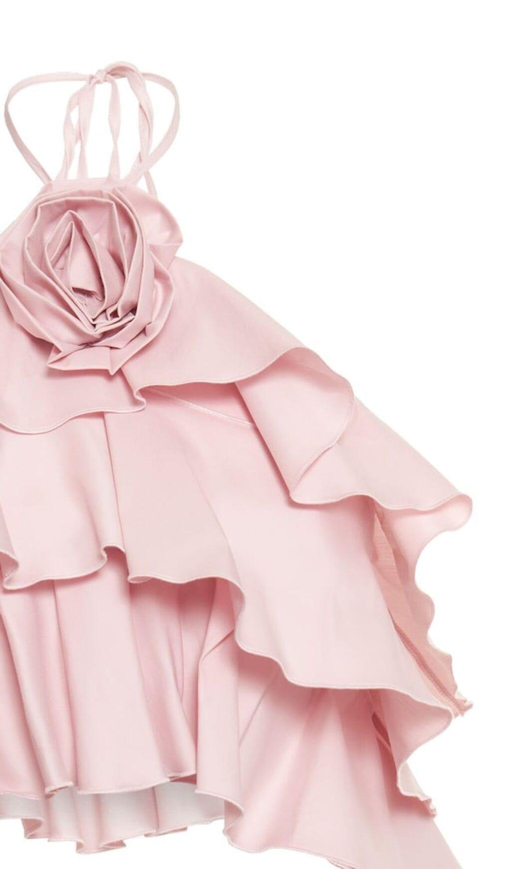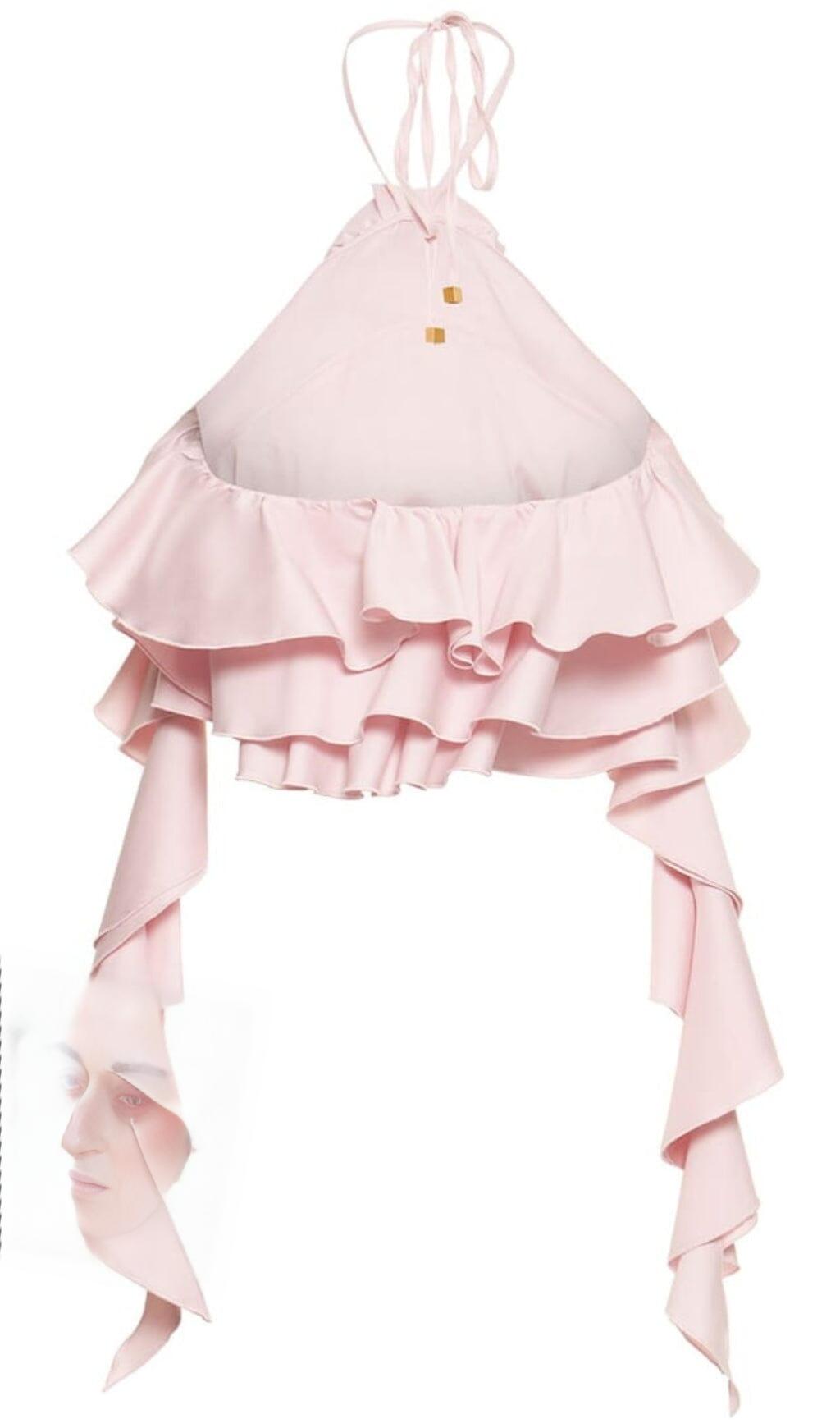 RUFFLE-DETAIL HALTER CROP TOP IN PINK
