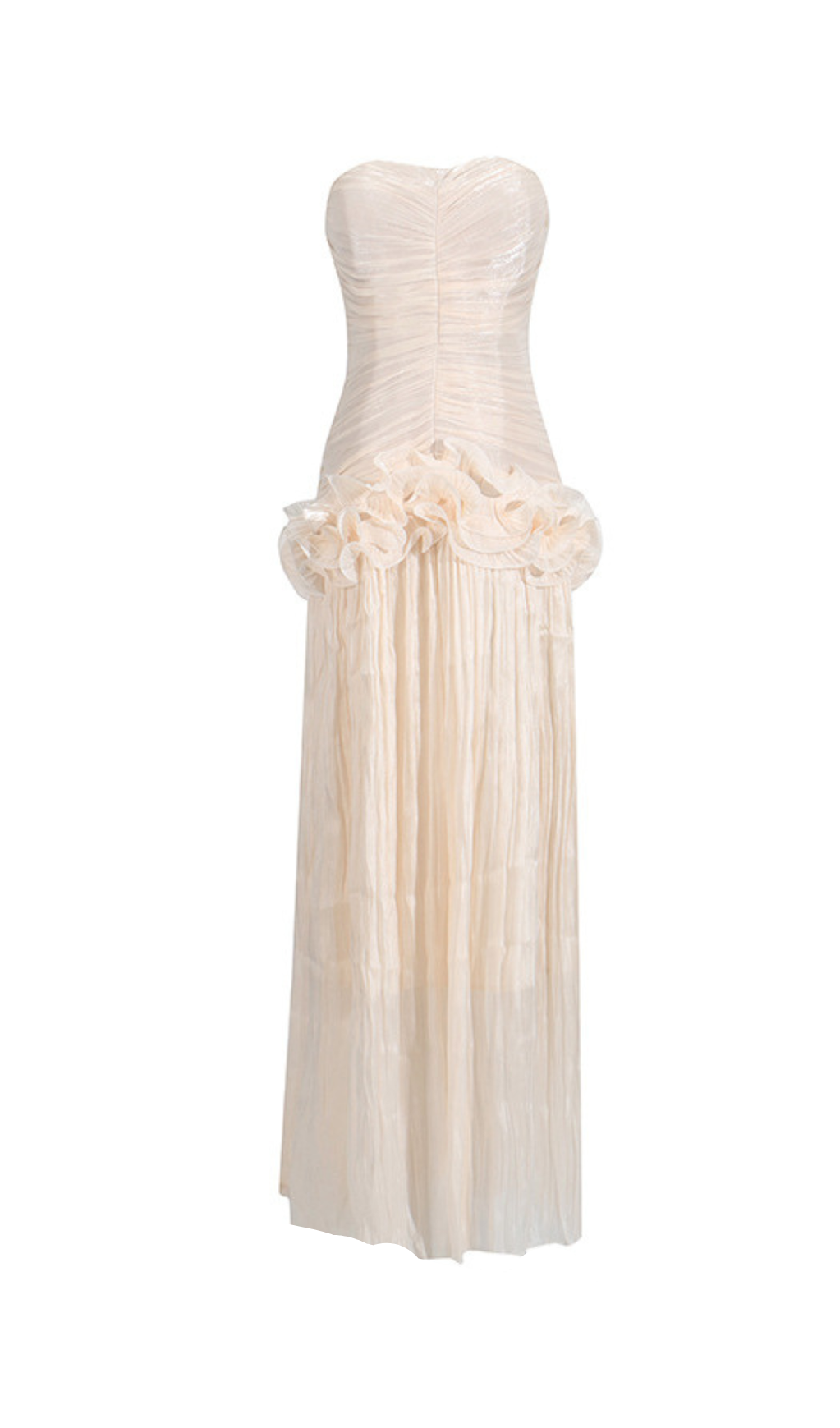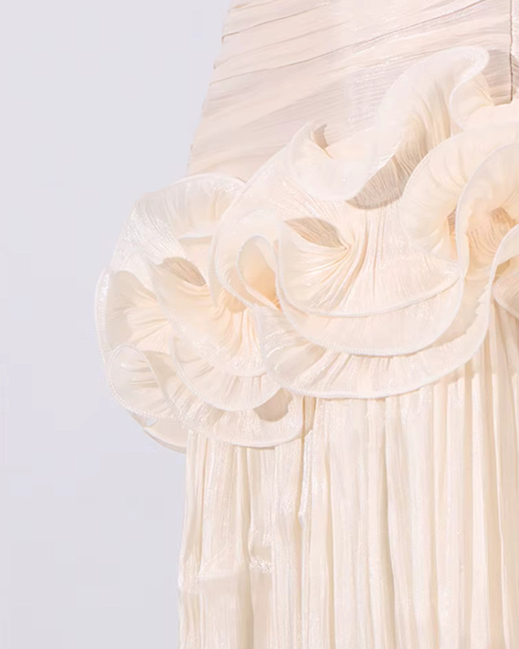 Expertly designed with a feminine touch, this apricot ruffle-embellished pleated maxi dress is perfect for any occasion. The carefully placed ruffles add a delicate flair, while the pleats create a flattering silhouette. Made with high-quality materials, this dress is both stylish and comfortable.