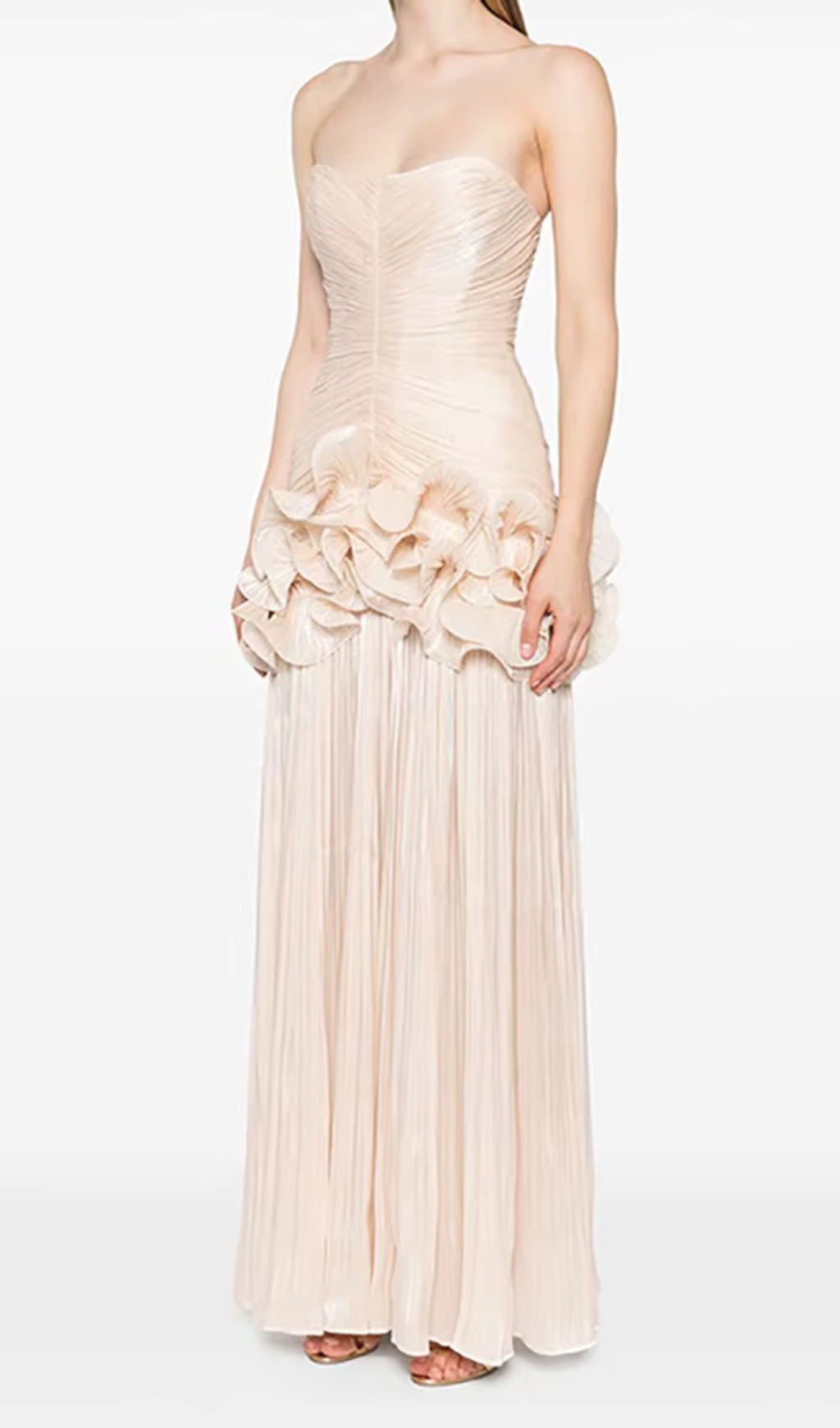 ruffle-embellished pleated maxi dress in apricot