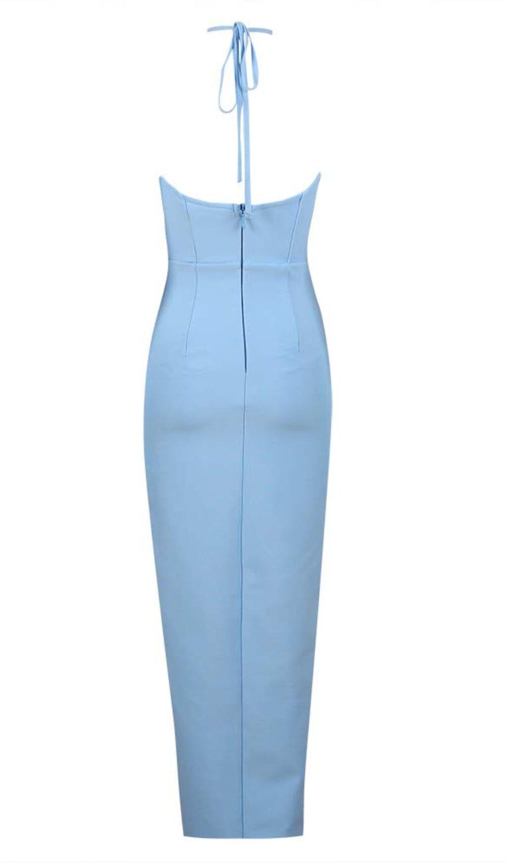 RUFFLE FLOWER-EMBELLISHED MIDI DRESS IN BLUE